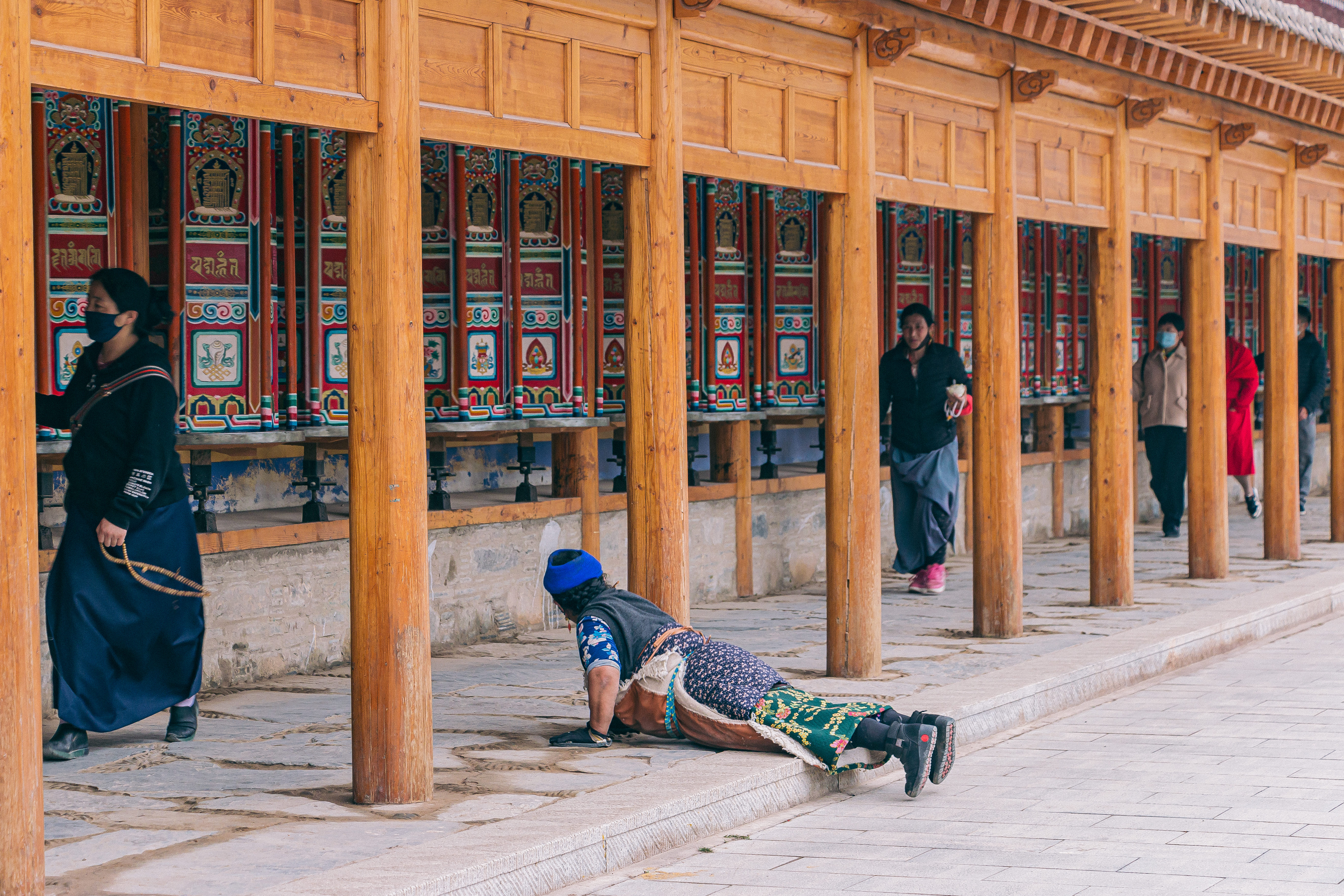 即使拉卜楞寺算是 甘南 旅行中最为知名的景点之一,但在国庆假期,在拉卜楞寺里前来朝拜人也占据着多数。于是游客就像一个个旁观者那样,局促不安地模仿着朝拜者的动作来参观如此圣地,生怕做错了什么