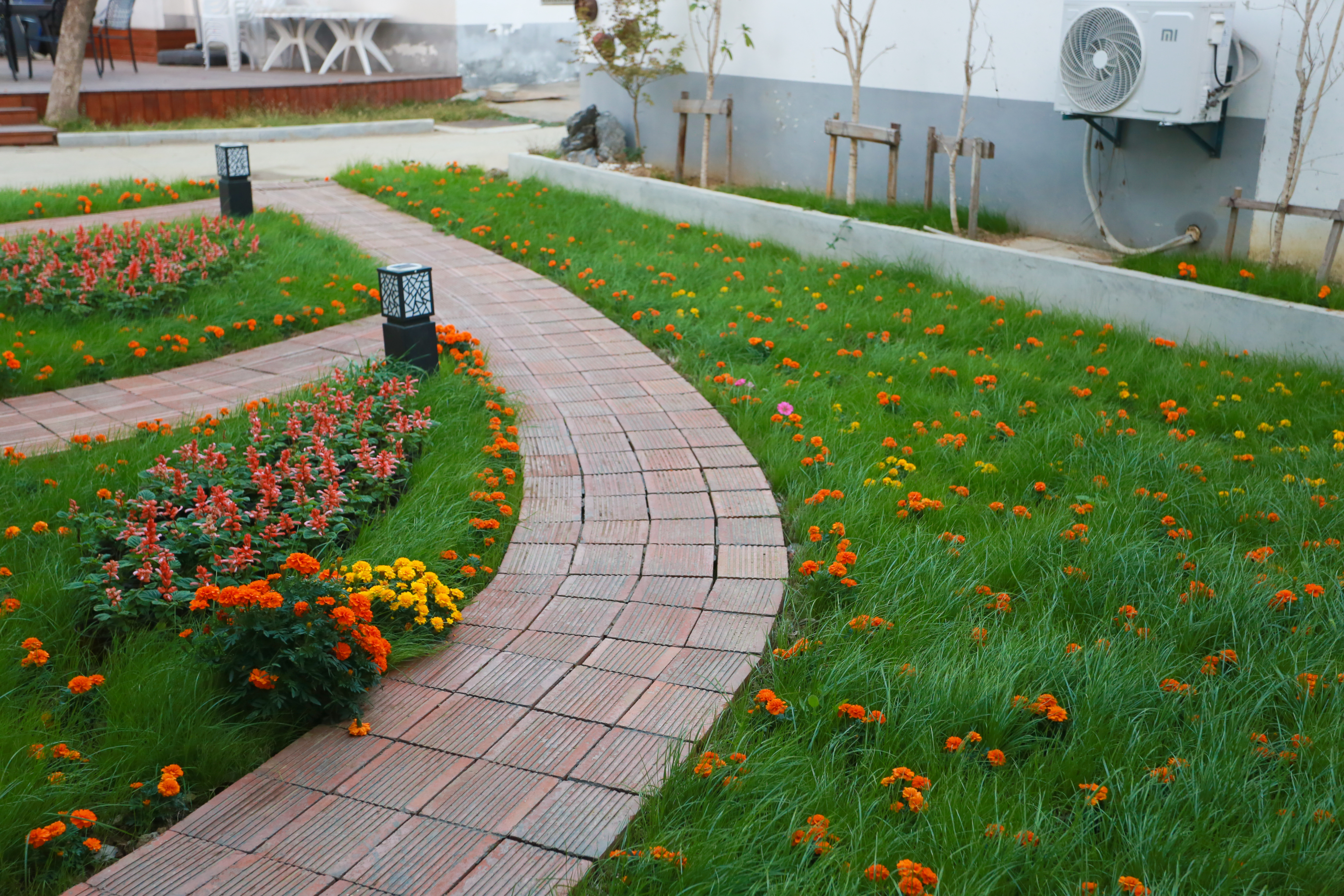 门口的小桌子上还摆满了五颜六色的花草和多肉植物,真的太爱了。