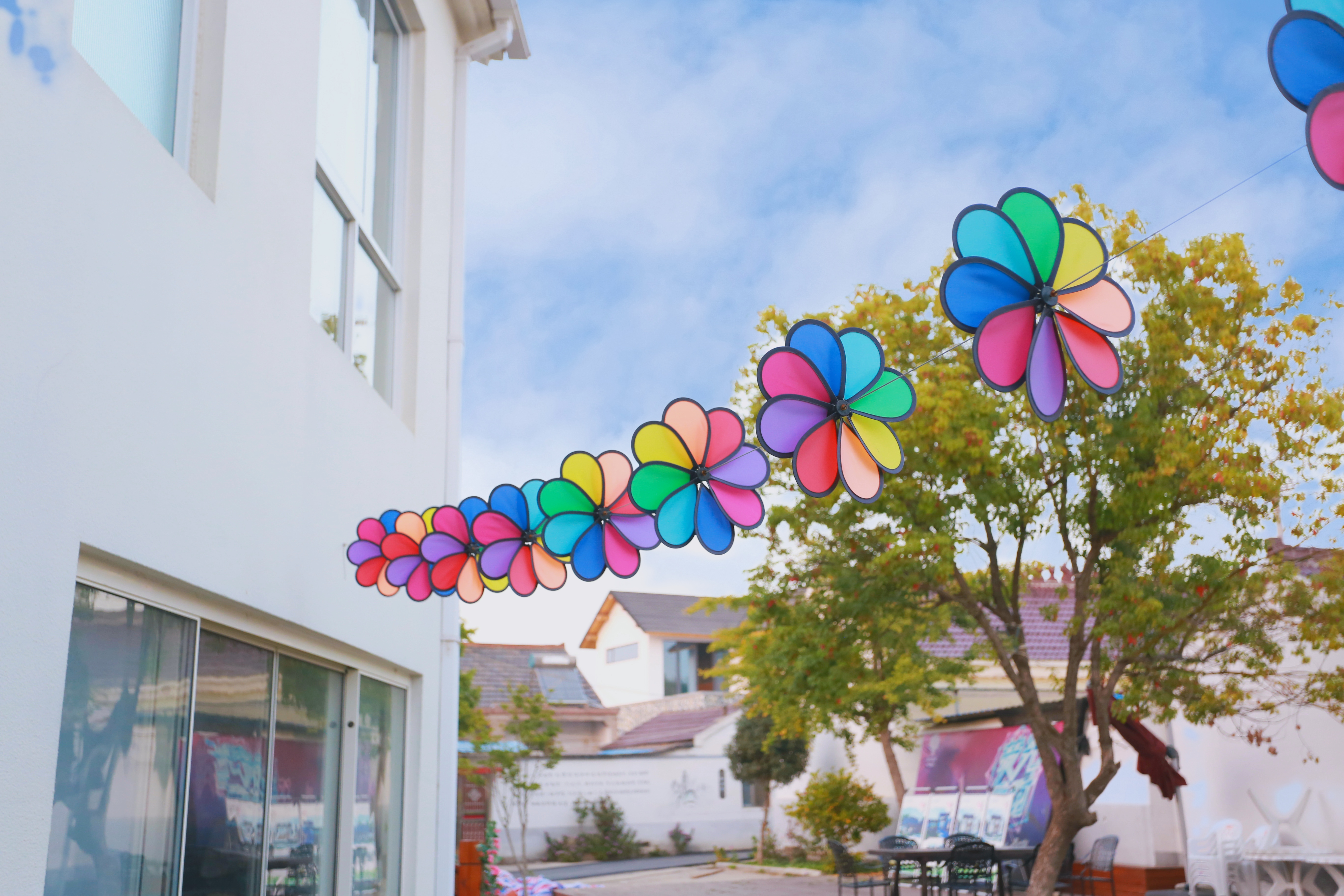 别墅门前还有木头桌椅板凳,入住的第二天午后,我们坐在这里刚好能晒太阳,舒服极了。