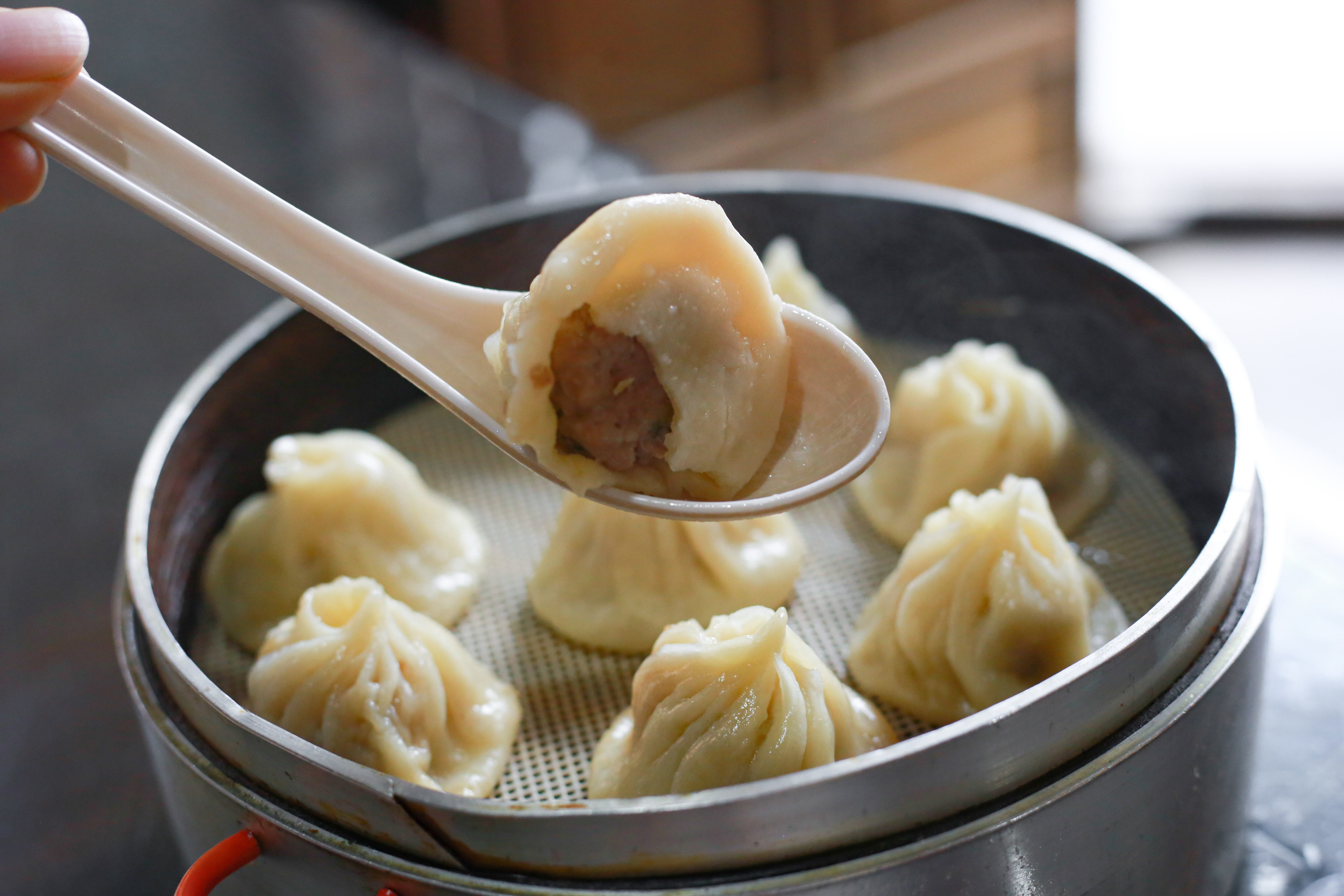 汤包一笼八个,没错还是要趁热吃,毕竟凉了美味必然会大打折扣。说实话面皮略微有点厚,汤汁也不算多,但是肉的鲜味调的很足,肉馅也甚是饱满,一口包子配一口鸡汤干丝,绝了。