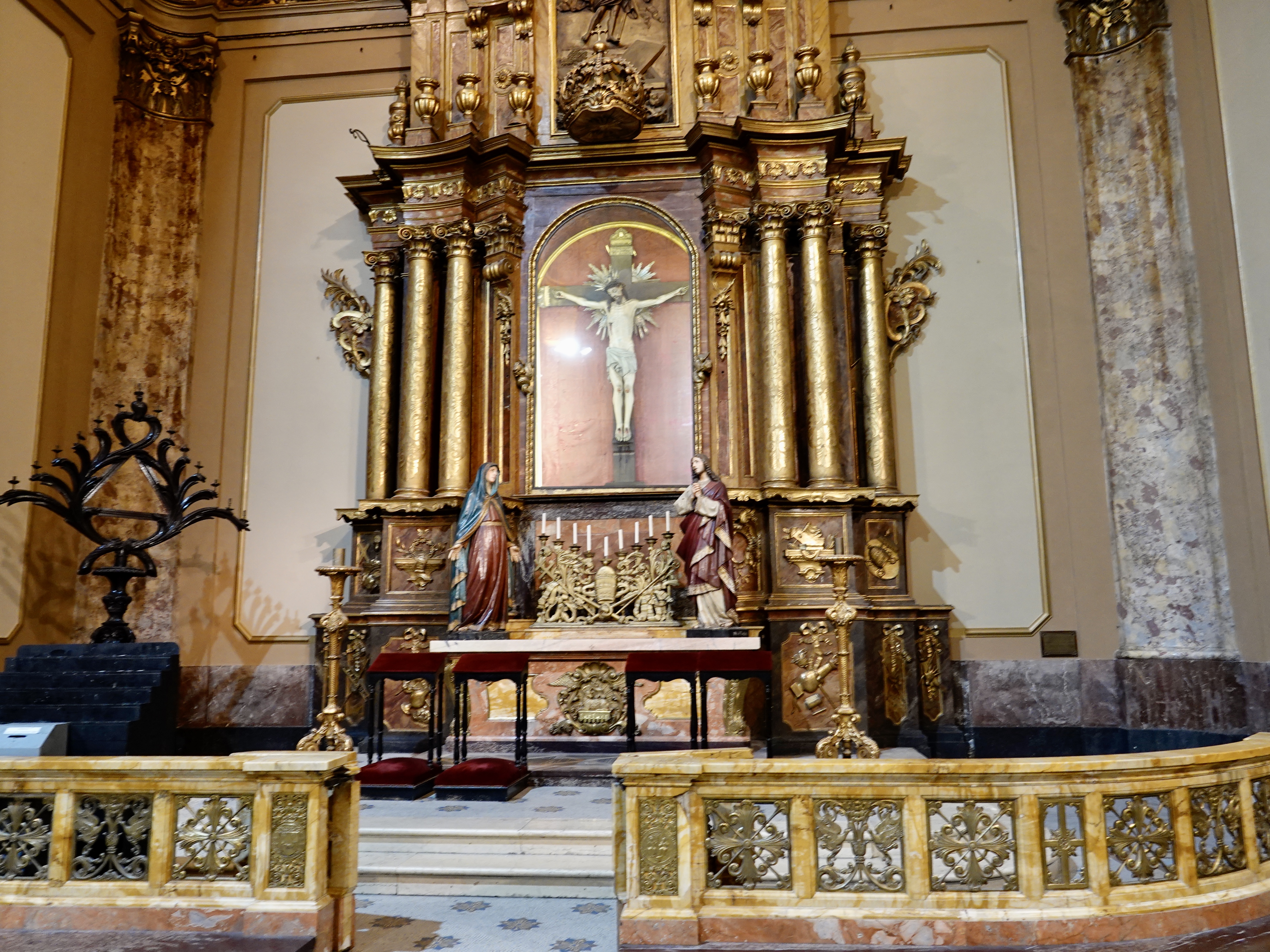 步入教堂,金碧辉煌的教堂穹顶,高大华丽的廊柱令人震撼。阿根廷的民族英雄、南美解放者何塞·德·圣马丁将军的陵墓就安葬在大教堂里。棺木上覆盖着阿根廷国旗,还有持剑的卫兵守护。