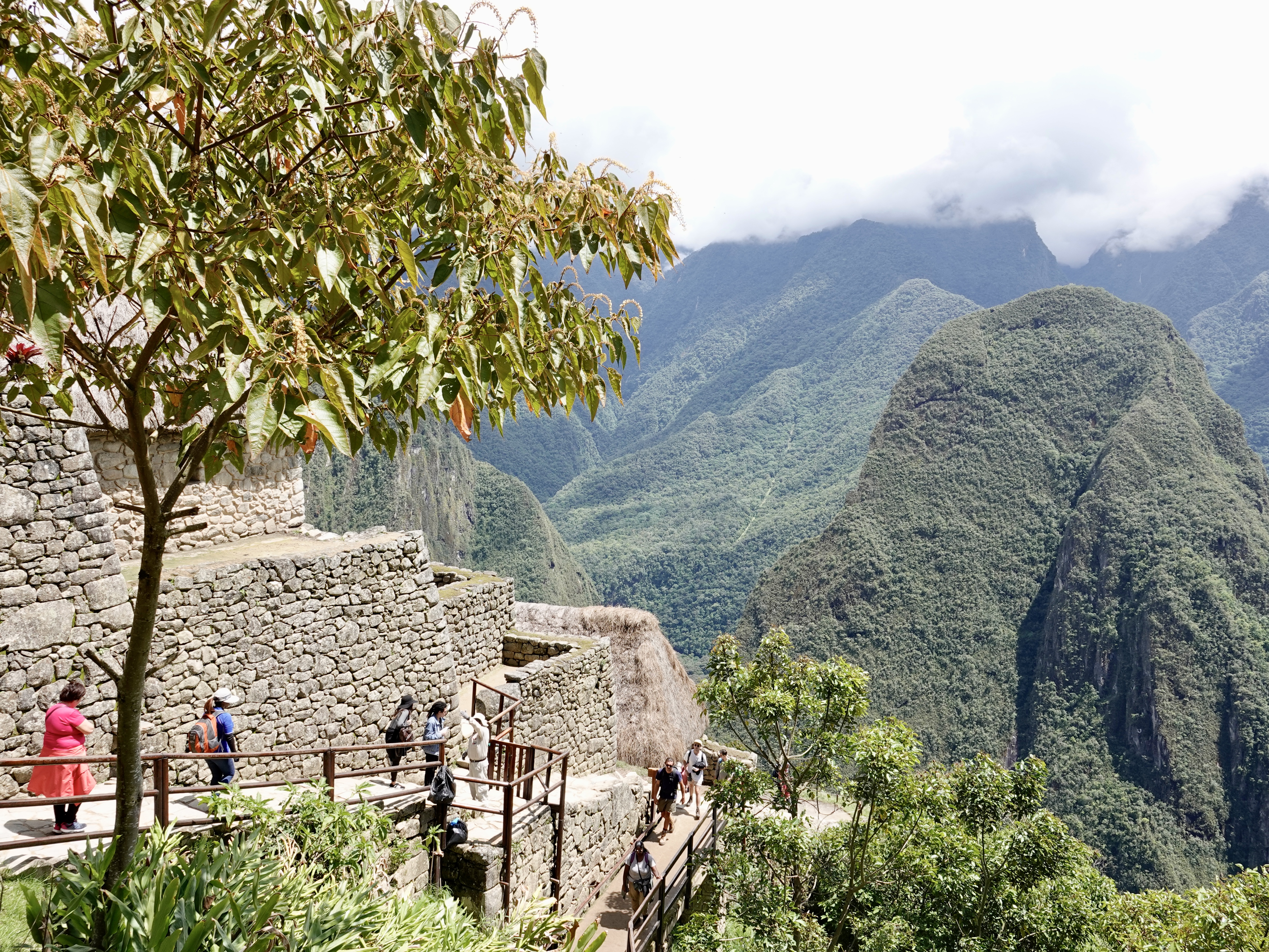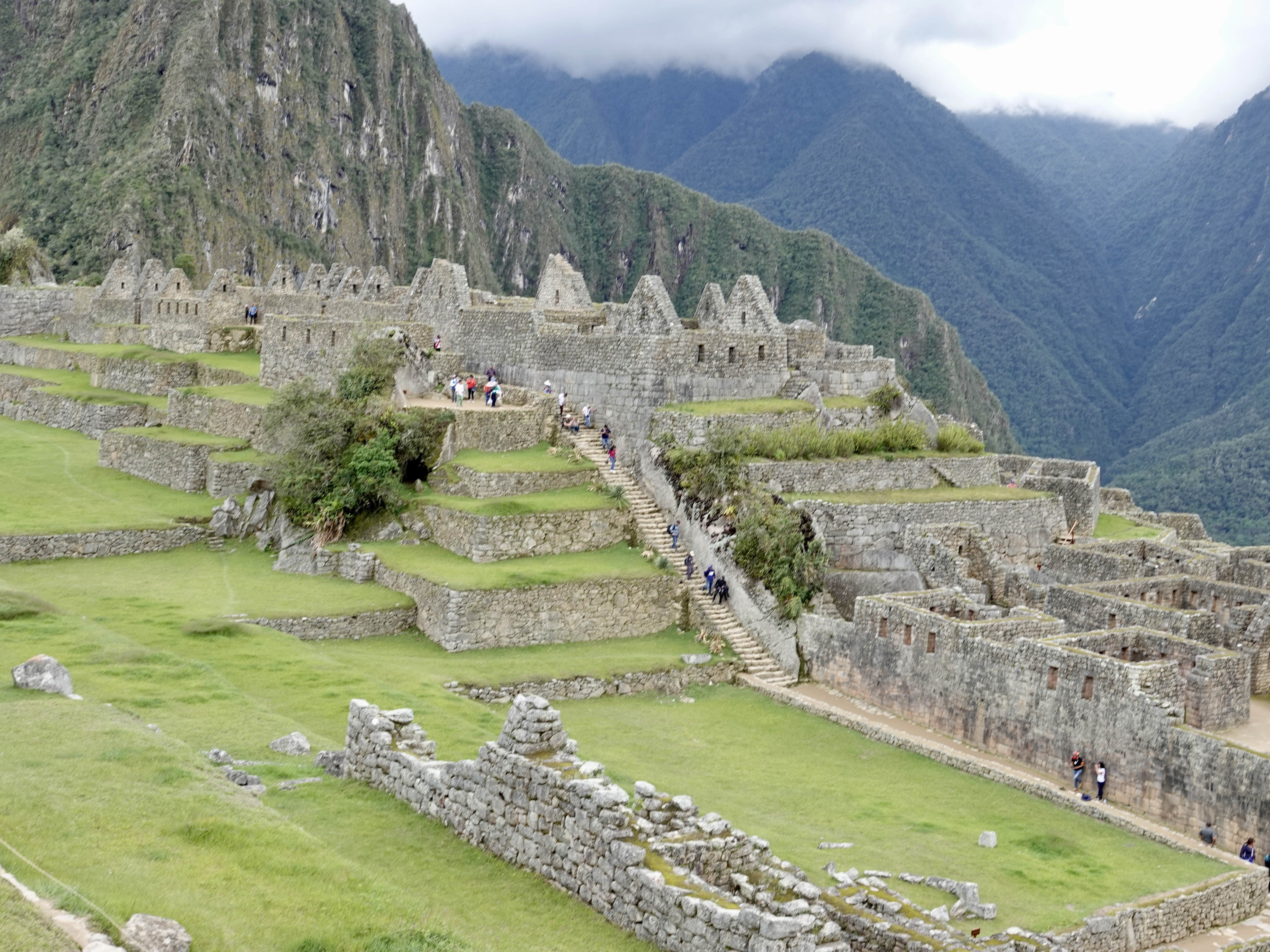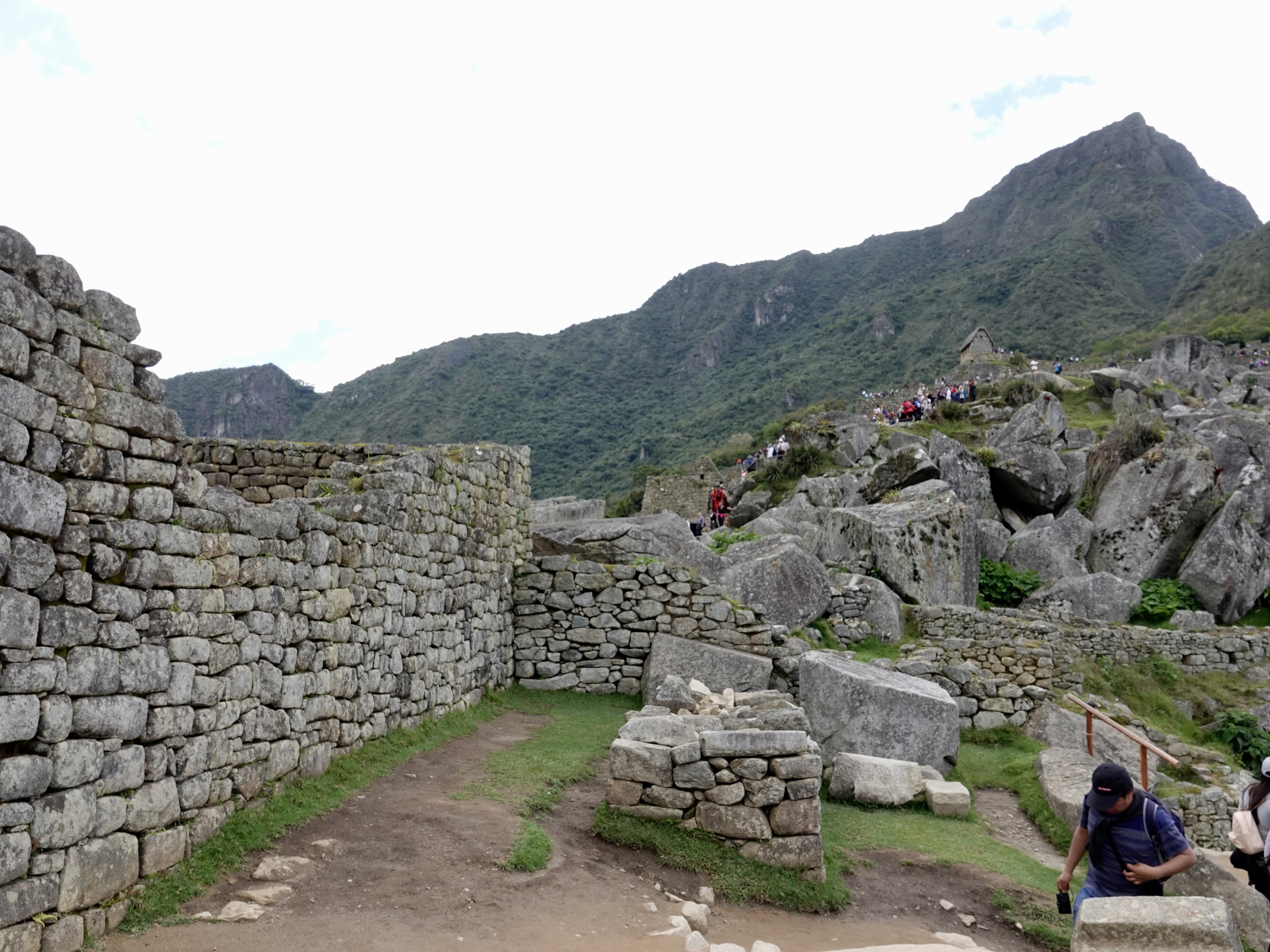 在马丘比丘,依次走过看见过,城门主入口,梯田农业区,印加住宅,采石场,主神庙,圣石,主广场,三重门,神鹰庙,太阳神庙等等。散落在草地上羊驼们在静静地吃草,一副与世无争的,冷眼旁观的憨萌态。按照固定的线路跟着导游匆匆忙忙地走过,马丘比丘就像一块璞玉,没有受到西班牙殖民者的污染,展现了印加帝国曾经的辉煌,留下谜一样的建筑,令人赞叹,令人痴迷。要知道印加帝国虽然有发达的道路网,却没有车轮,他们仅有的家畜是羊驼和骆马。