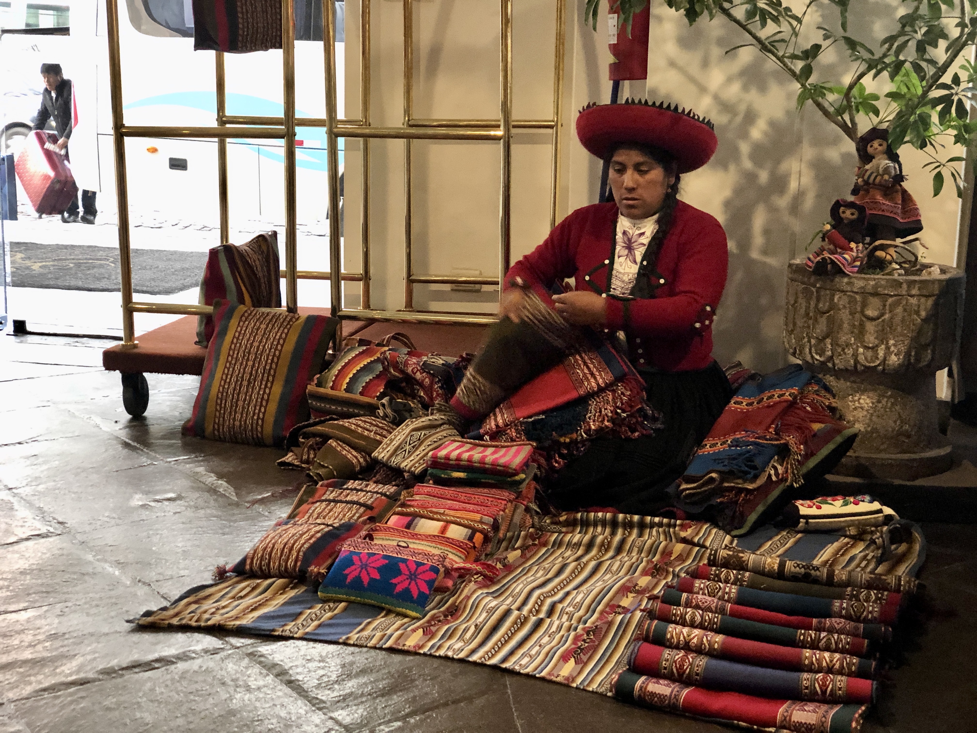 几条狭窄的石铺街道呈放射状通向四周,广场周围是密密麻麻的红顶房屋,整个库斯科城是围绕武器广场向外延伸的。库斯科印加帝国时期城市的布局依然留存,城内一些印加帝国时代街道、宫殿、庙宇和房屋,至今仍健在,之后西班牙殖民者又修建了大批房屋建筑,两种建筑风格融合又相互辉映,形成库斯科饱经沧桑独特的风景。在广场拱廊边的羊驼绒店里徘徊,忍不住买了条羊驼绒围巾。还在广场附近的超市买了秘鲁的特产藜麦和巧克力。