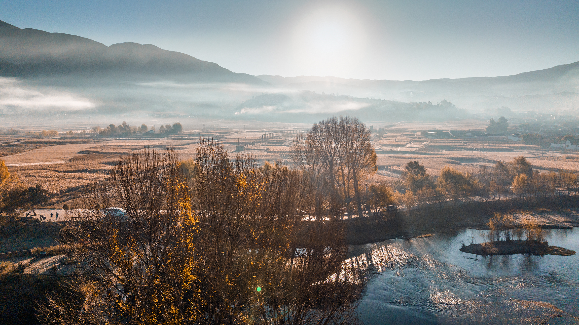 “大理有冬天吗?”有,当然有,一看叶,二看天,北风乍起,但花香依旧,只是天空更加高远淡泊,没收完的稻田仍旧留着稻香。