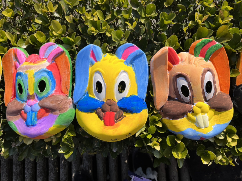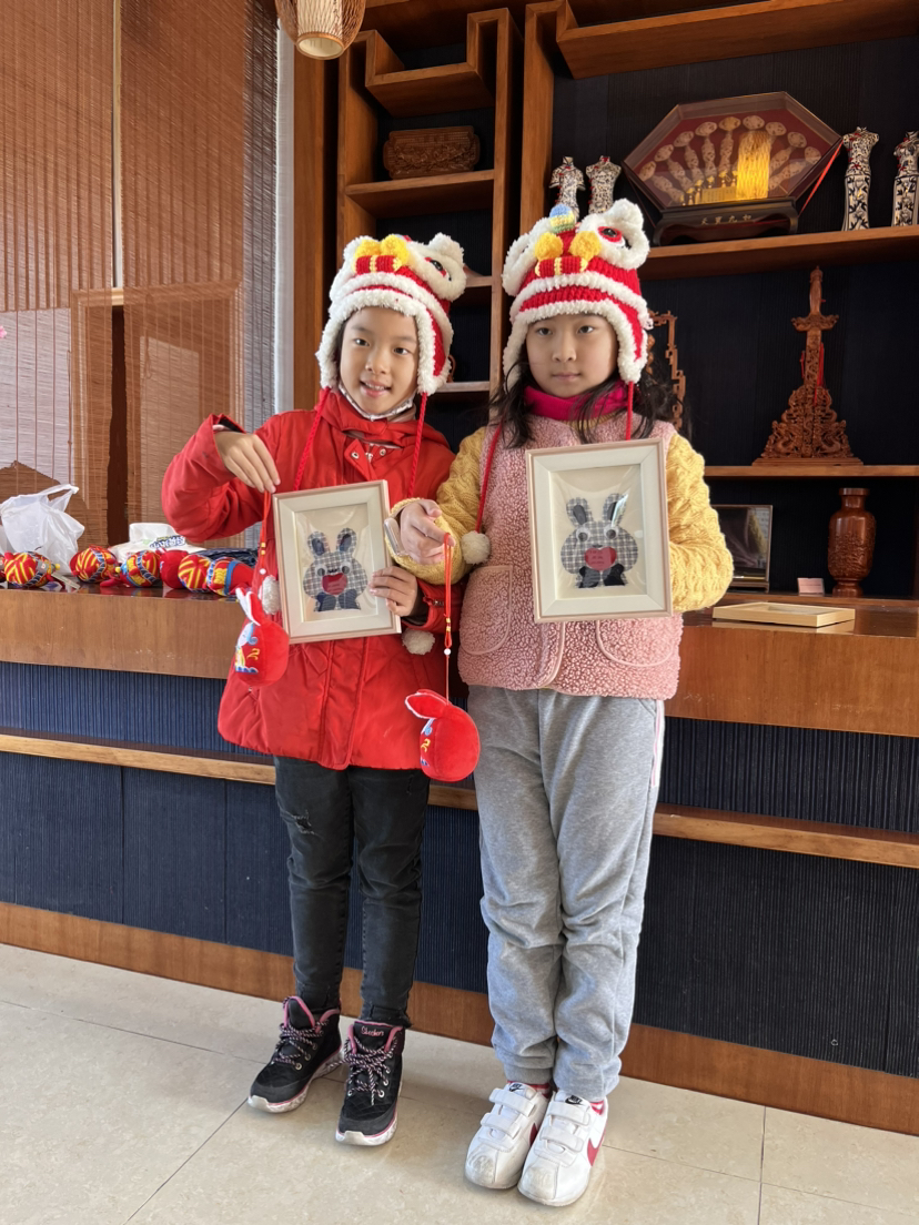 画画兔年面具、剪窗花、打陀螺、做花灯……这些年俗游戏,小朋友们兴趣盎然,大展身手。