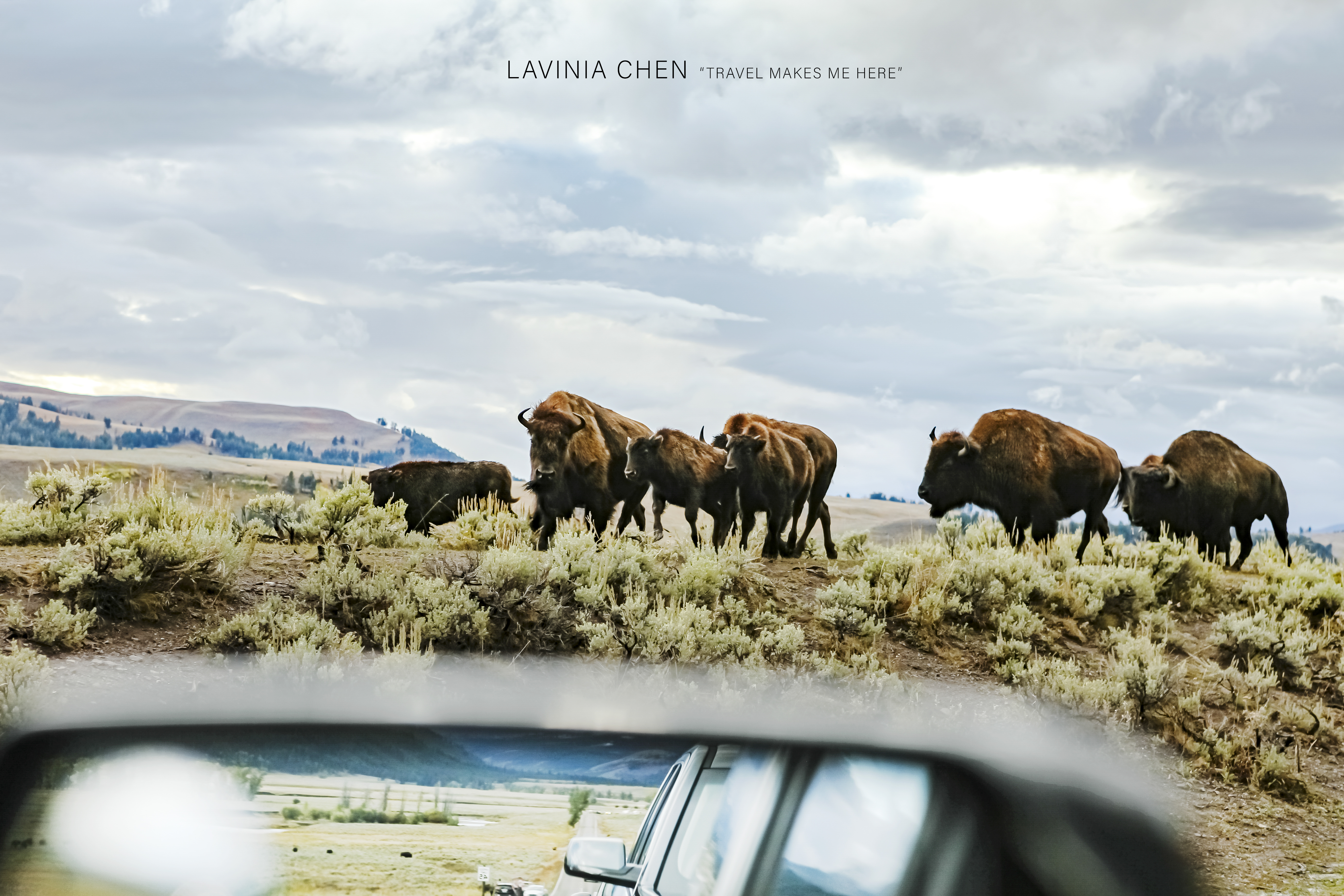 这简直就是太梦想中的场景,大自然、公路、野牛、我们,这一切太神奇了。