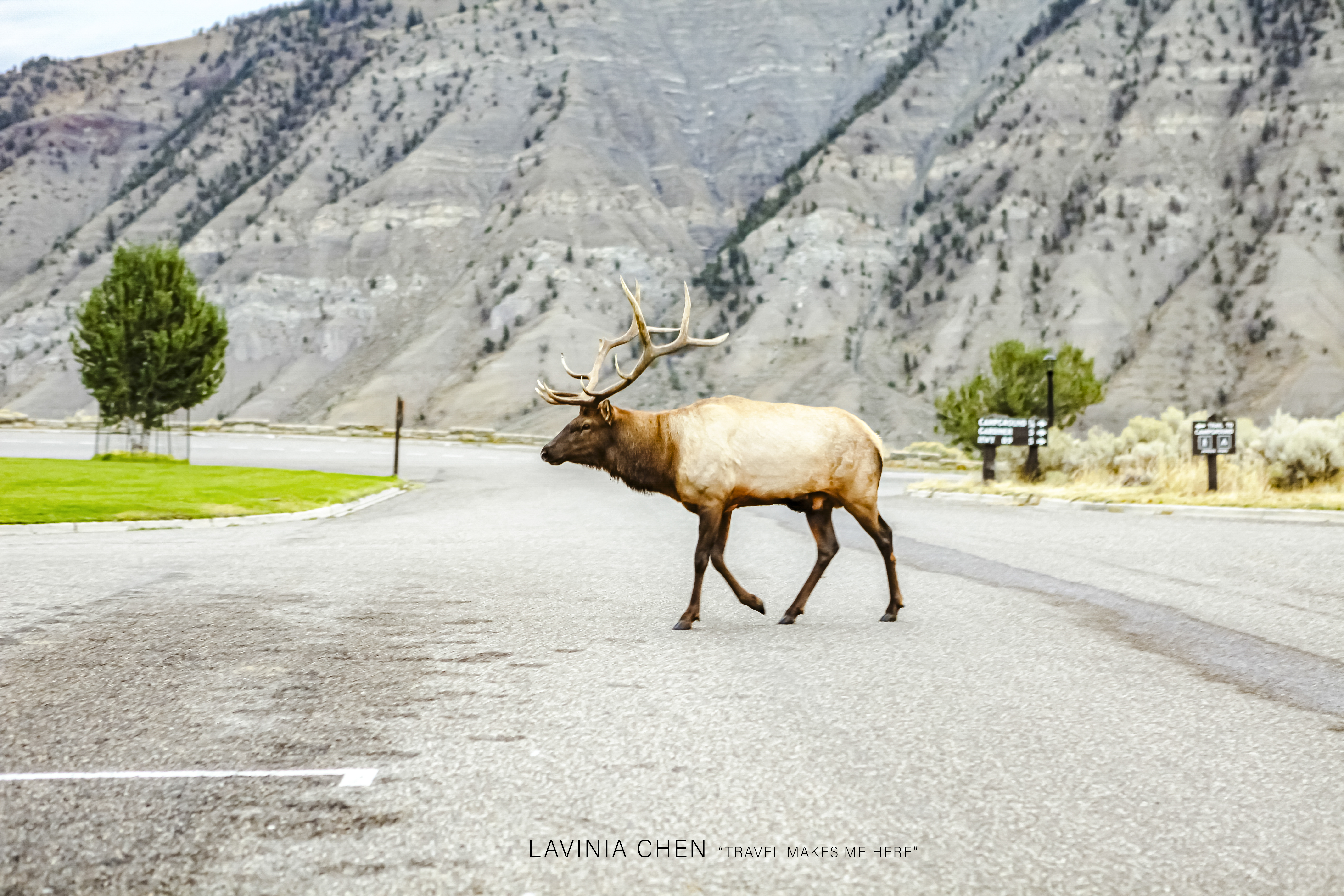 3. 园内大部分限速45mph(72.5kmph),小部分限速25mph,一定不要超速,尤其是晚上。黄石动物很多,很可能他们也在路上和你在一起奔跑。