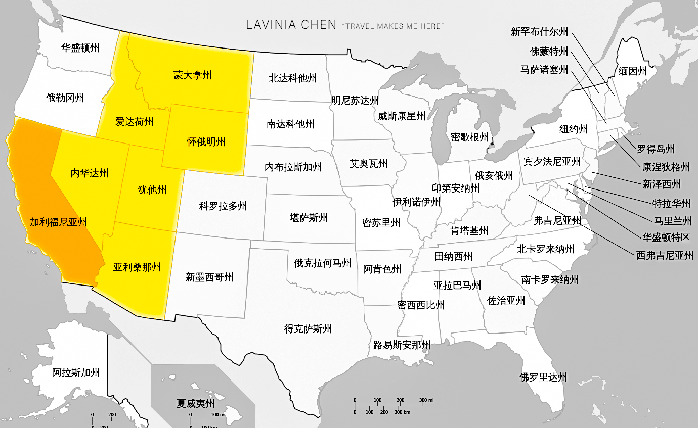 为了更好的讲述这次旅行,我在每章开头会以地图的形式体现到访州的位置。