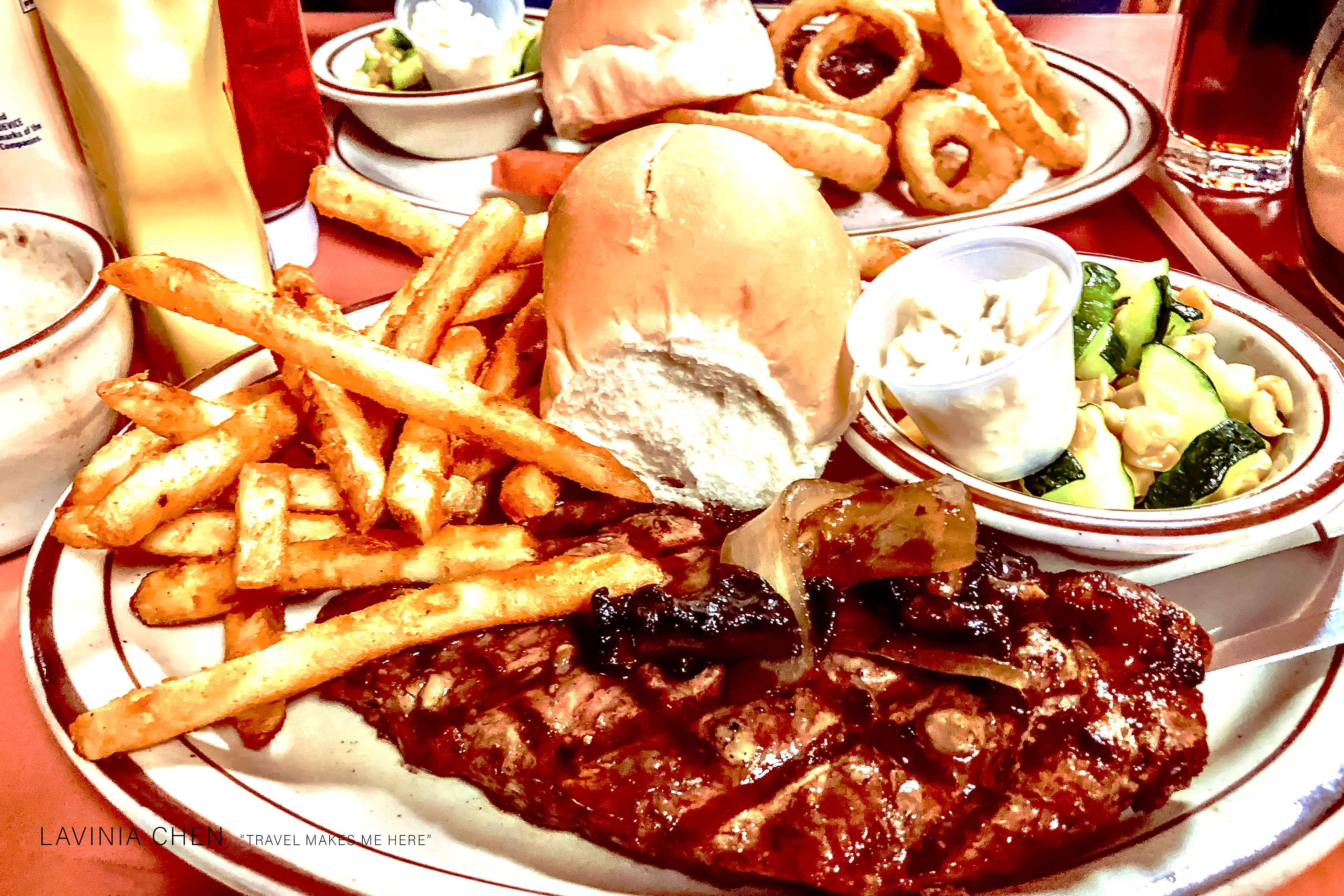 我们找了一间当地人很多的餐厅,点了美国国菜和英国国菜。