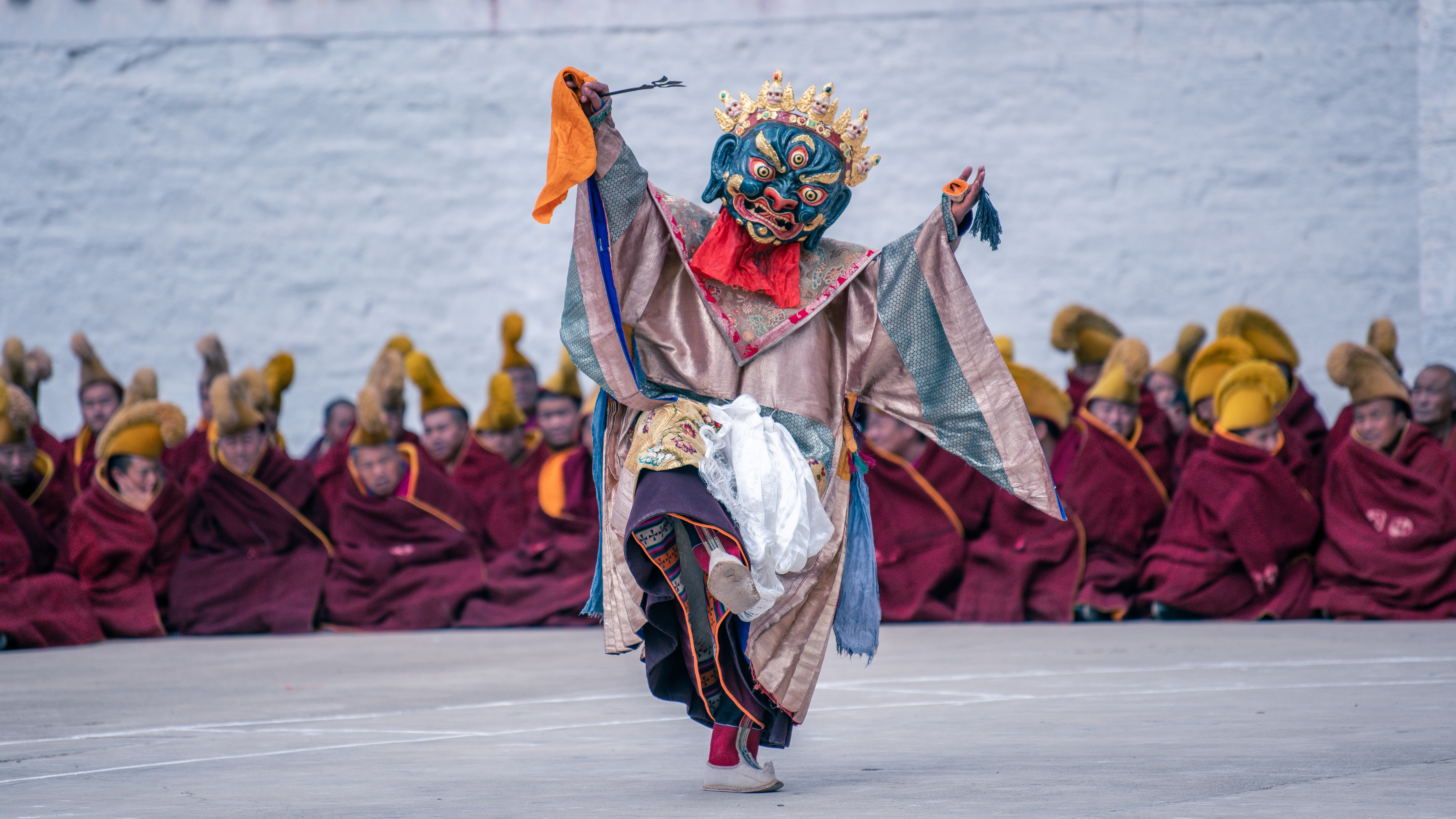 随着大威德金刚的演出谢幕,所有护法神都集体登场,在广场上集体作法,驱魔辟邪。