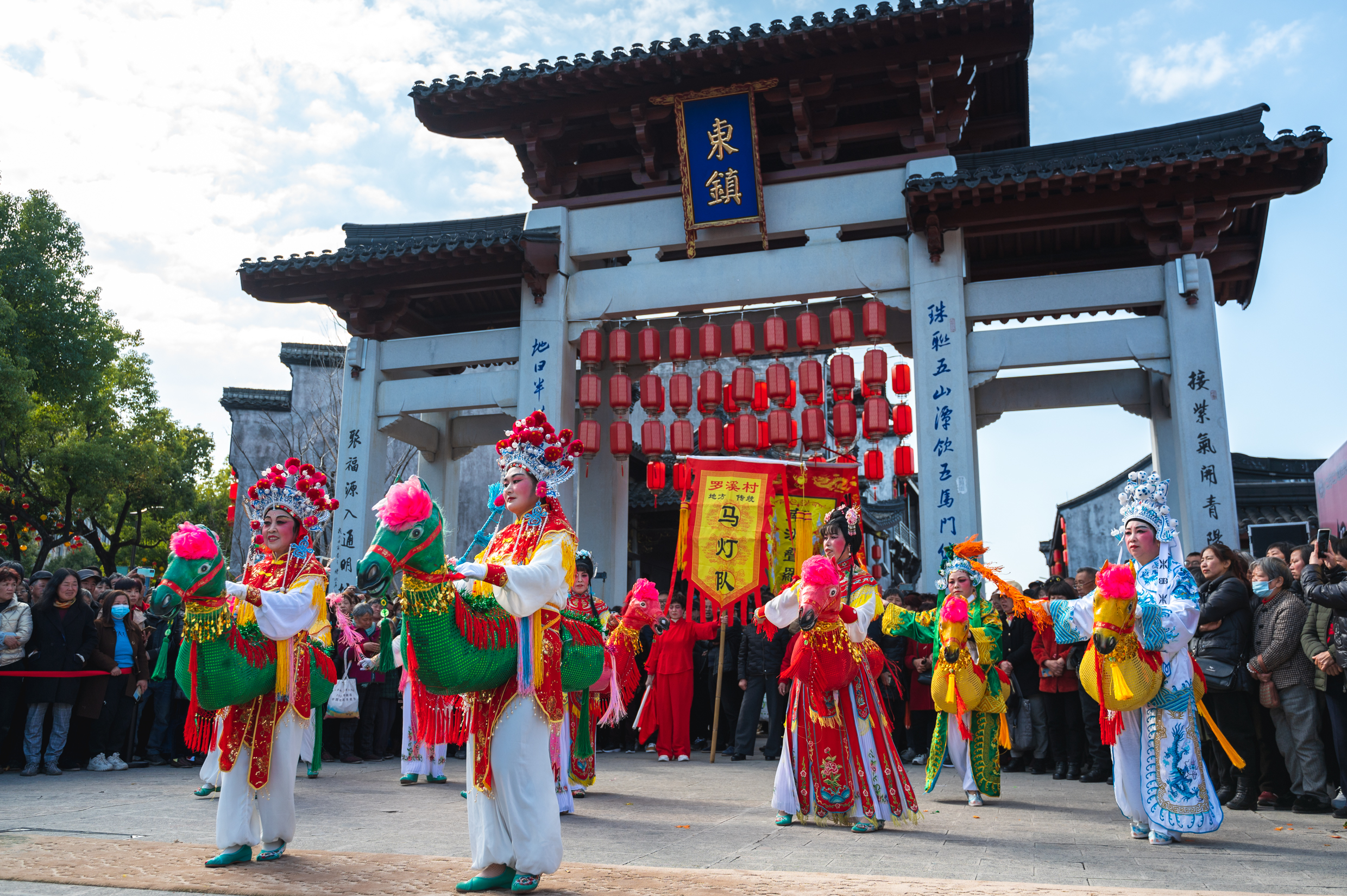 除了舞龙舞狮,现场还看到了马灯及南洲叠罗汉,丁家坞马灯是绍兴市市级非遗,又叫调马,据传始于南宋末年,其历史非常之悠久。