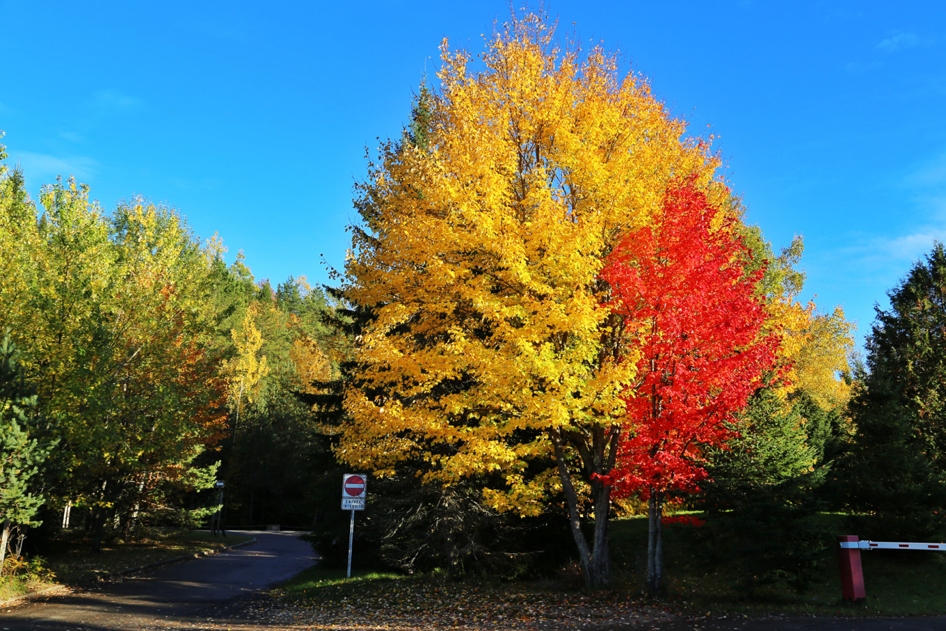 阿岗昆省立公园是广东话的音译(多伦多的老华侨以广东人居多),而普通话音译应该是阿尔贡金省立公园。60号公路横穿阿岗昆省立公园,如果只是路过是不需要买票的,若是停车去走走公园的trail(小径),则需要停车票的,单日单车17加元。公园东西各有一个门,我们到达的是东门,我们先到这里的游客中心来停一下,除了要拿公园的游玩地图外,最主要是来购买停车票的,游客中心要支出主路,主路上并没有检查站,这点和蒙特郎布朗公园不同,一不留神会直接开过去的。