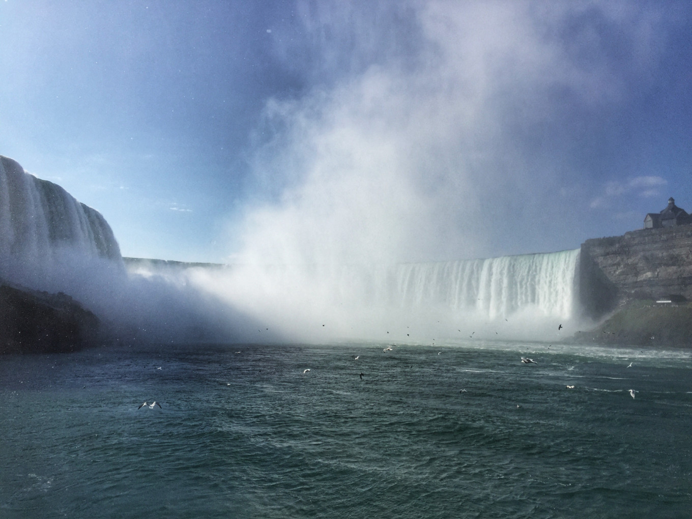 尼亚加拉大瀑布以其宏伟磅礴的气势、丰沛浩瀚的水量而著称,与南美的伊瓜苏瀑布及非洲的维多利亚瀑布合称世界三大瀑布。尼亚加拉大瀑布包括加拿大和美国两个瀑布,加拿大瀑布是马蹄瀑布,美国瀑布是新娘面纱瀑布。酒店外的瀑布就是马蹄瀑布,站在瀑布边上真是声音如雷,带来很强的视觉震撼。