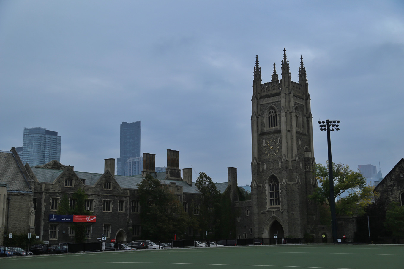 第一站多伦多大学。多伦多大学是加拿大最高等的学府。校区位于多伦多市中心,美丽的校园像是混凝土森林中的一个绿洲。因为今天是周六,走到学校的路口,就看见有一个告示写着今天不许旅游巴士进入。
