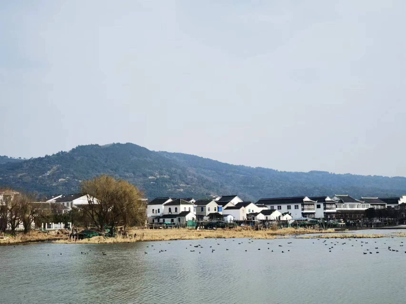 在村子里逛一逛,出来就能看到太湖。浩浩汤汤,水天一色。如果从山上下来的早,还能坐在湖边吹吹风,看看钓鱼,十分惬意。