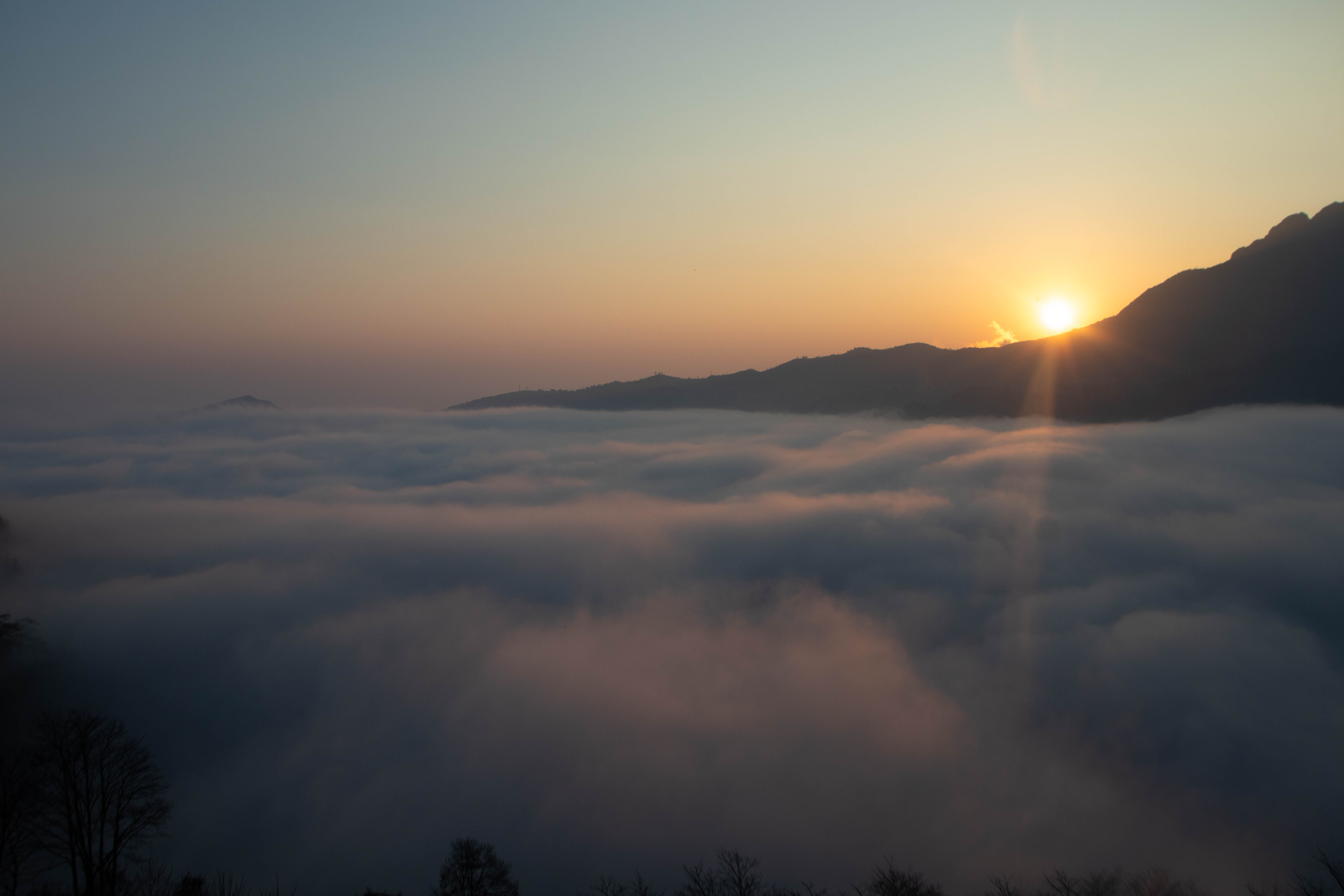 一场日出,好像看完了山中四季,还没让人来得及回味,田间大雾转眼逼上看台,驱逐着意犹未竟的看客,拉下剧终的帷幕。