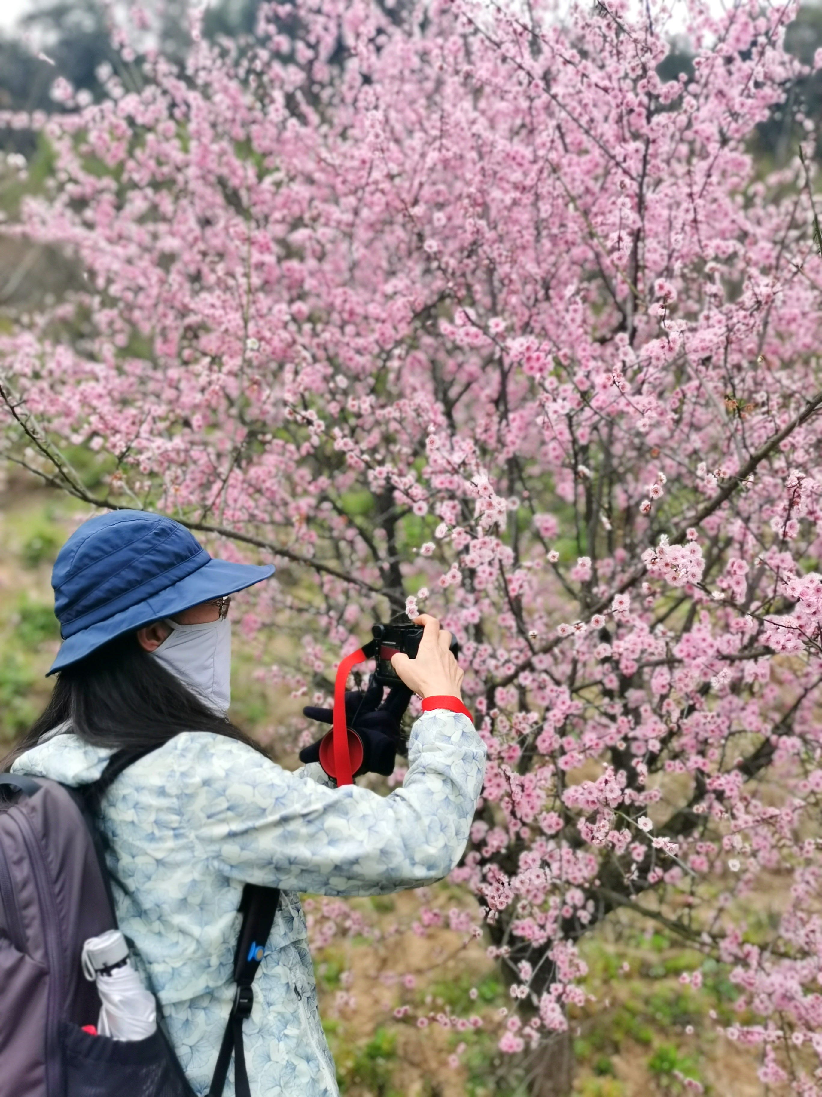 虽然已过了梅花盛花期,但却一点都没有影响大家伙儿的兴致,纷纷与那不多的几株梅花合影。