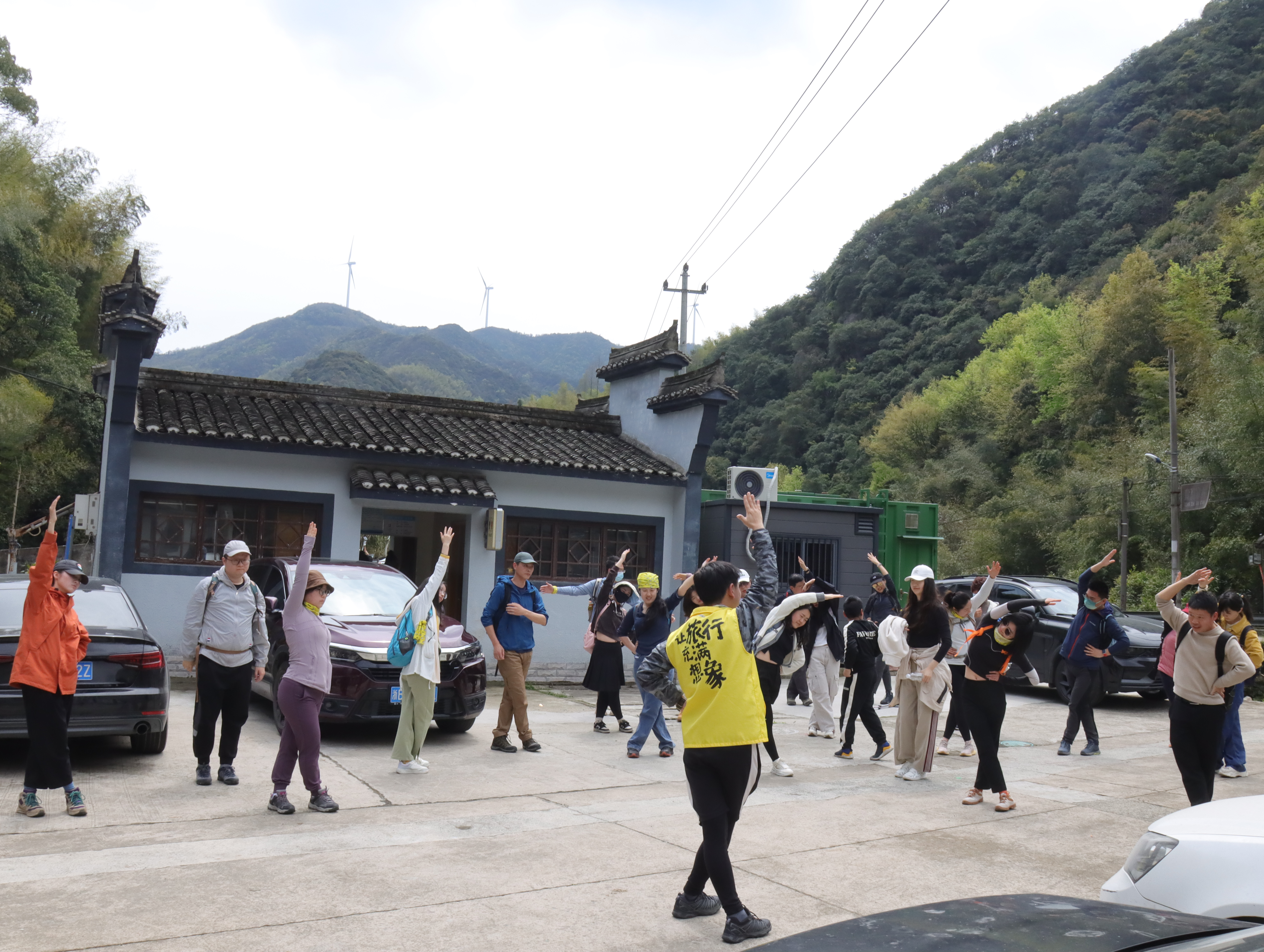 下了大巴,小克勒当即传授大家“游侠客拉伸八式”