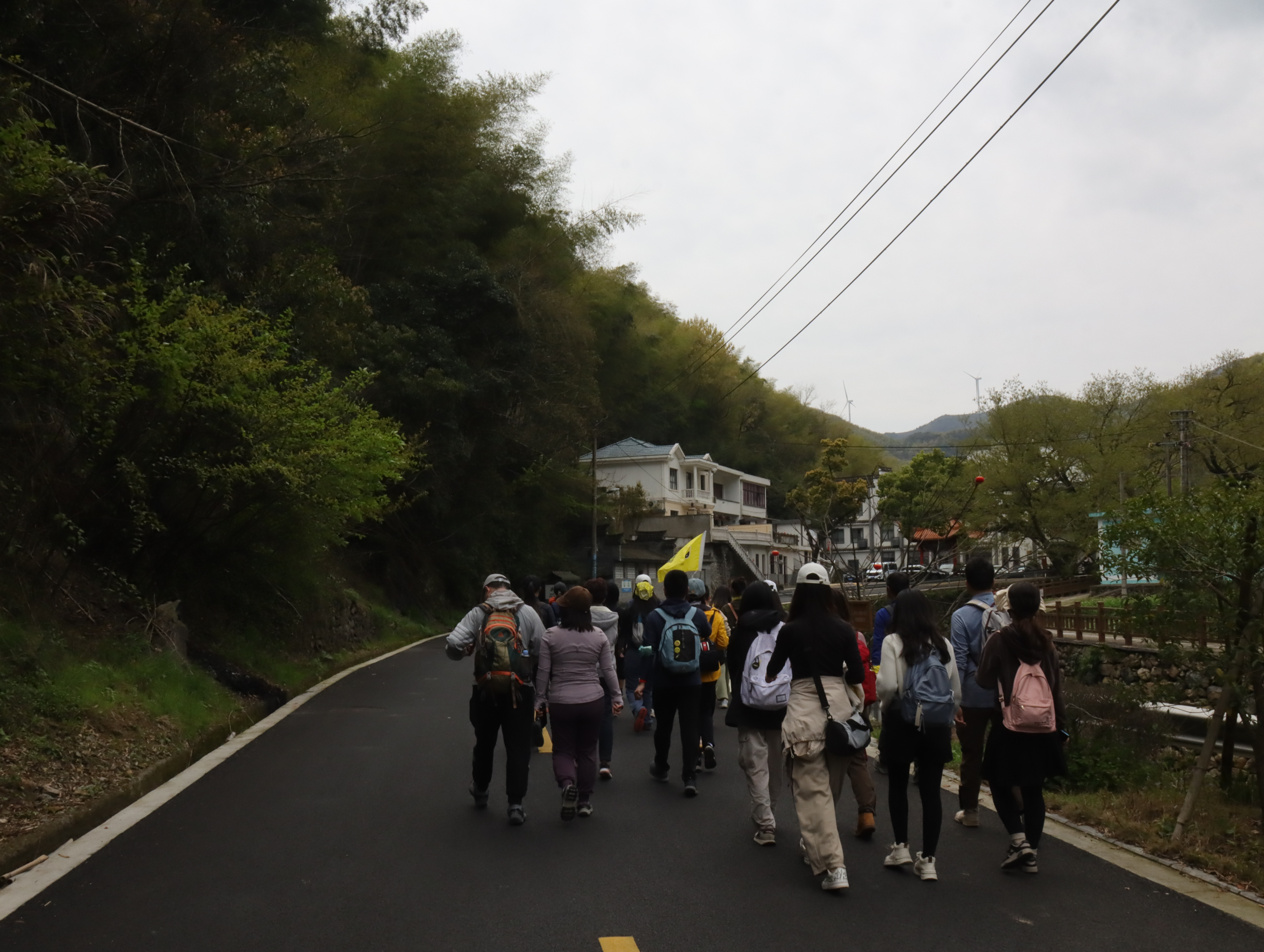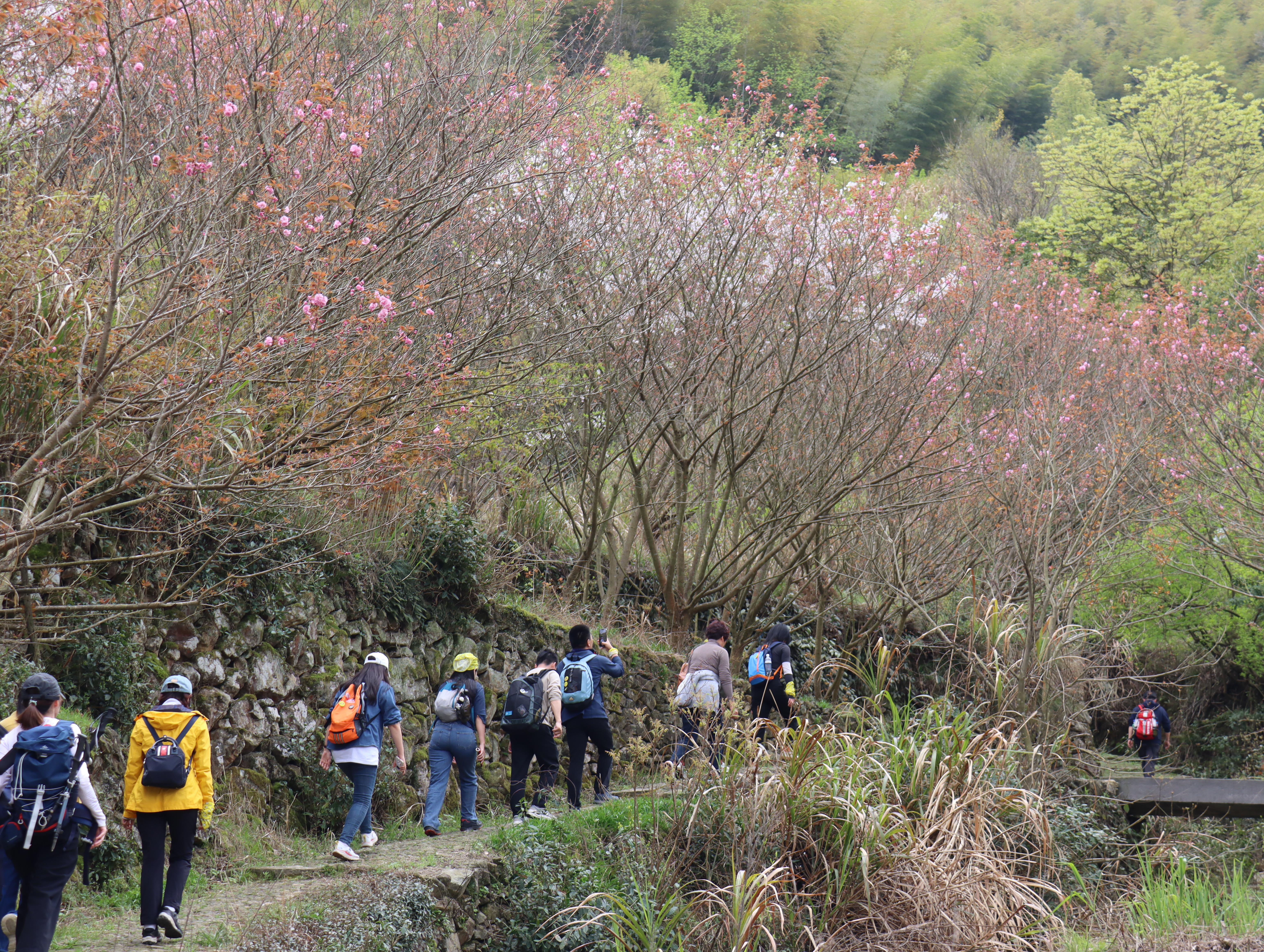 三十人浩浩荡荡向山里出发,路边依然零零散散开满了桃花