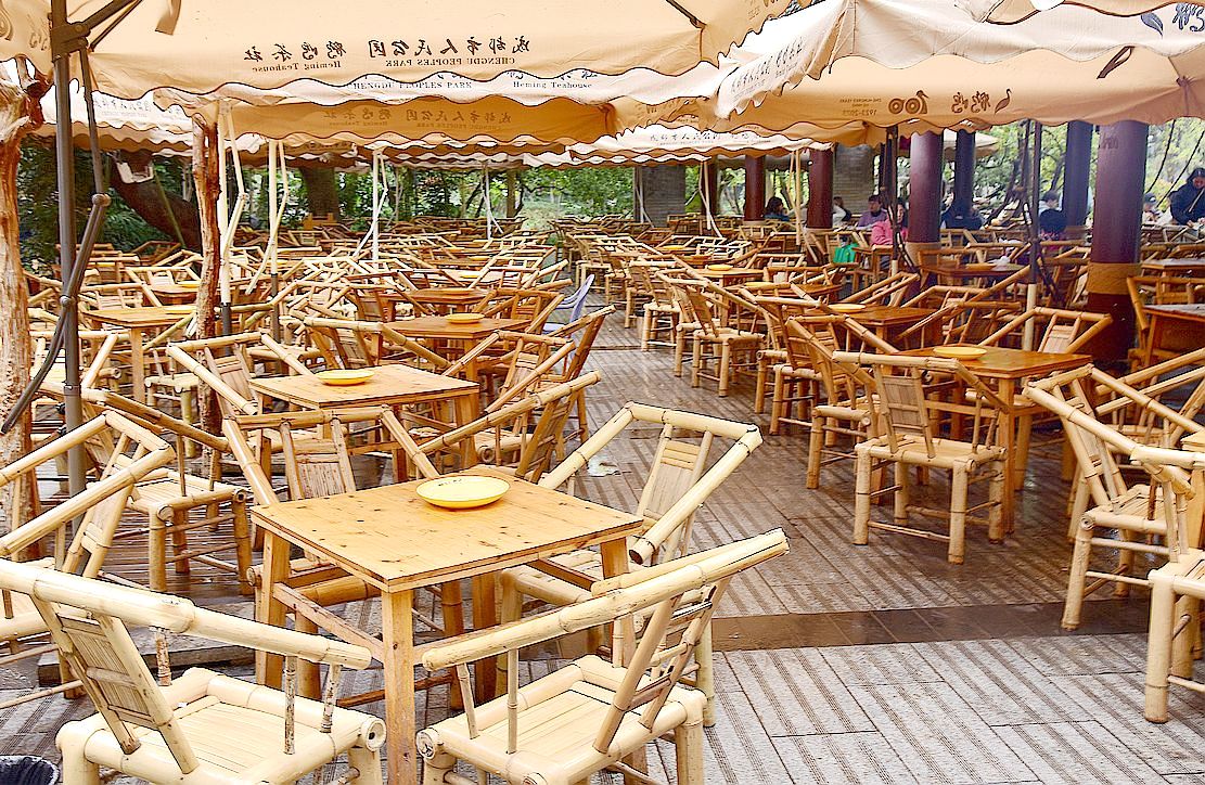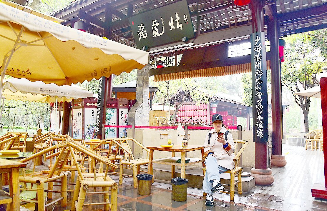 成都人民公园内最著名的还要数 -------- 鹤鸣茶社,近百年来风格不改,标配是竹椅、矮桌、盖碗茶,最拿手的茶是“香片”。 除了喝杯清茶,还可以看冲茶表演;或者找张躺椅睡起,喊个采耳师傅来掏耳朵;打几圈麻将或打牌……这就是真正意义上的偷得浮生半日闲吧。。