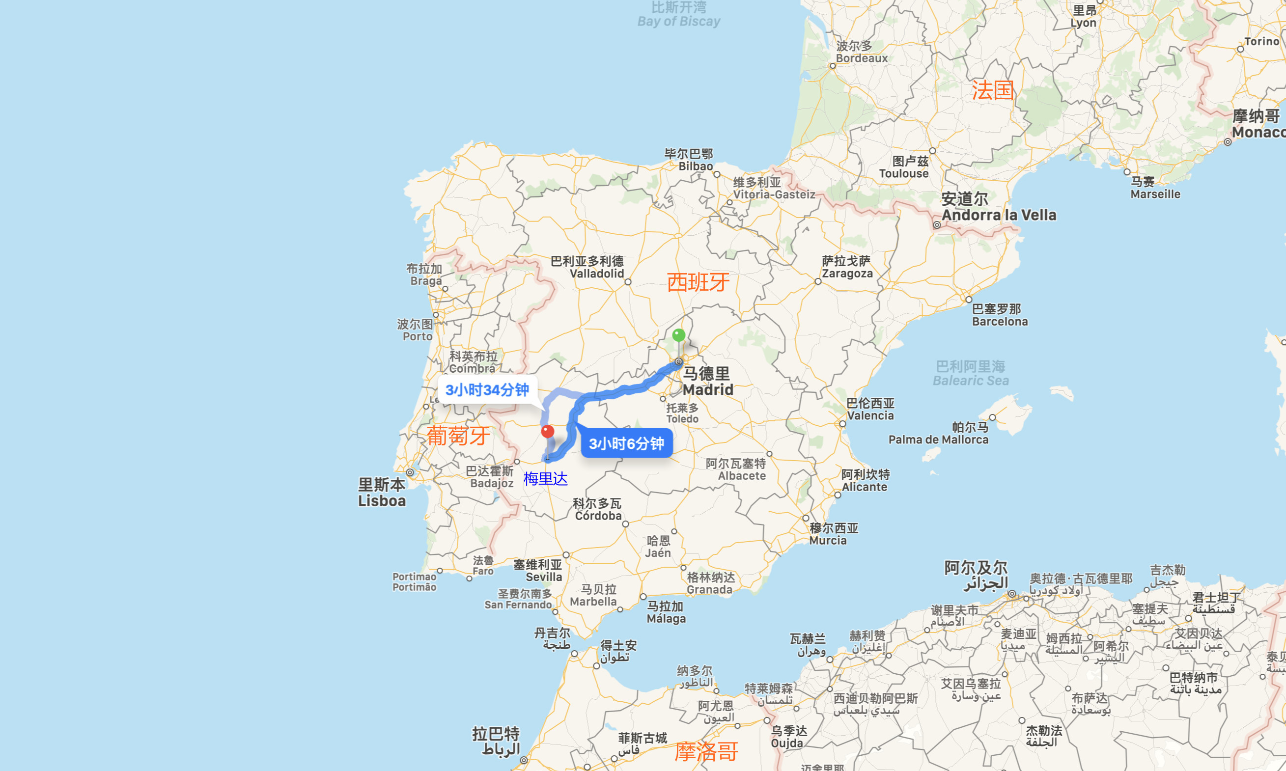 从马德里开车到梅里达全程350公里左右,大概需要3个多小时的时间。