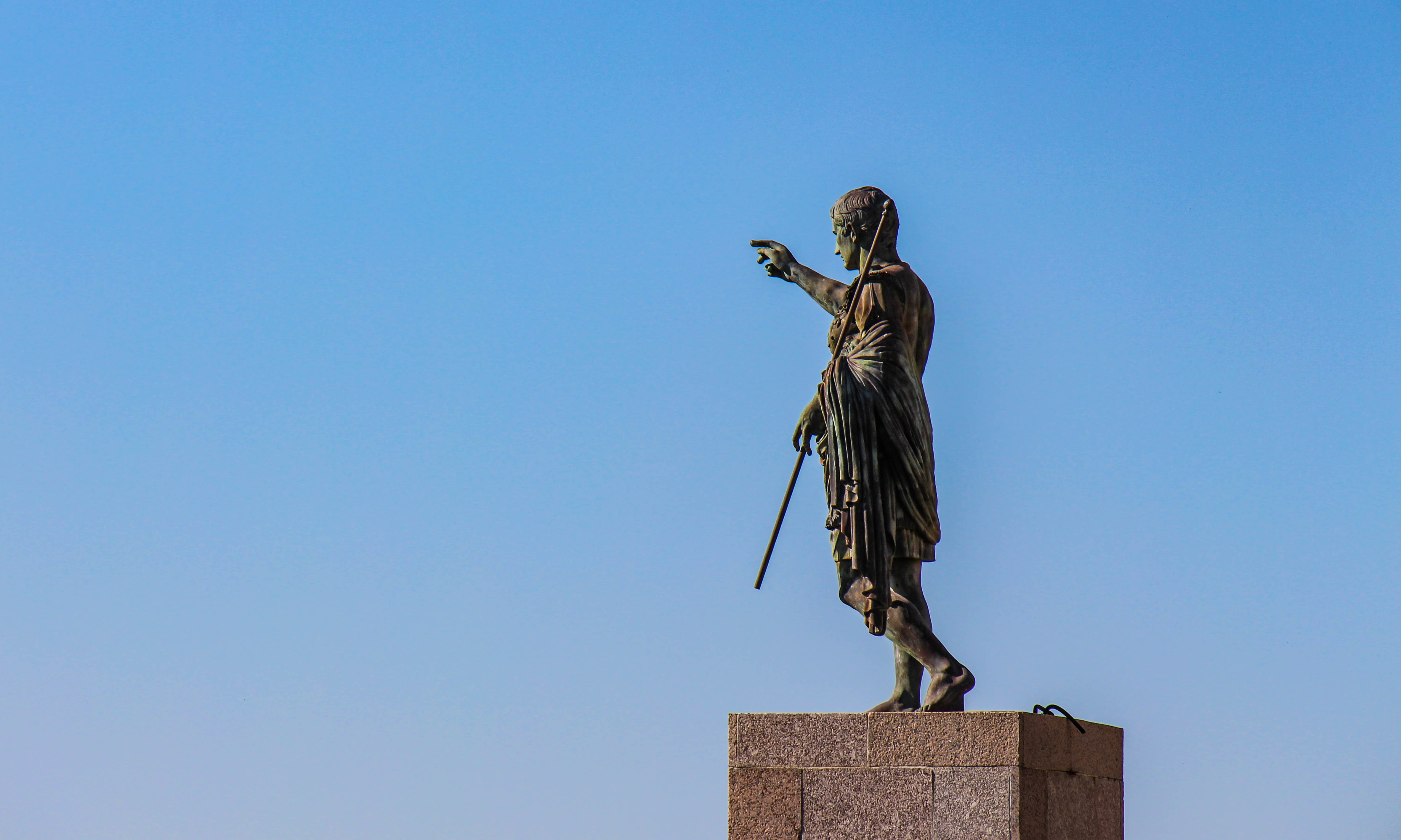 距离摩尔人遗迹考古群不远处有一座雕塑,看这手臂抬起的造型就知道这是古罗马皇帝奥古斯都没错!奥古斯都全称“盖乌斯·屋大维·图里努斯(Gaius Octavius Thurinus)”,是罗马帝国的开国君主,他是凯撒的甥孙和养子,也是凯撒正式指定的继承人,公元前43年他与马克·安东尼和雷必达结成后三头同盟后打败了刺杀凯撒的元老院共和派贵族,公元前36年他剥夺雷必达的军权,后在亚克兴角战役打败安东尼,消灭了古埃及的托勒密王朝,回罗马后开始掌握一切国家大权。公元前30年被确认为“终身保民官”,公元前29年获得“皇帝(Imperator)”称号,公元前27年获得“奥古斯都”的称号,保持罗马共和的表面形式,作为一位**统治罗马长达43年,奥古斯都结束了一个世纪的内战,使罗马帝国进入了相当长一段和平、繁荣的辉煌时期,史称罗马和平。