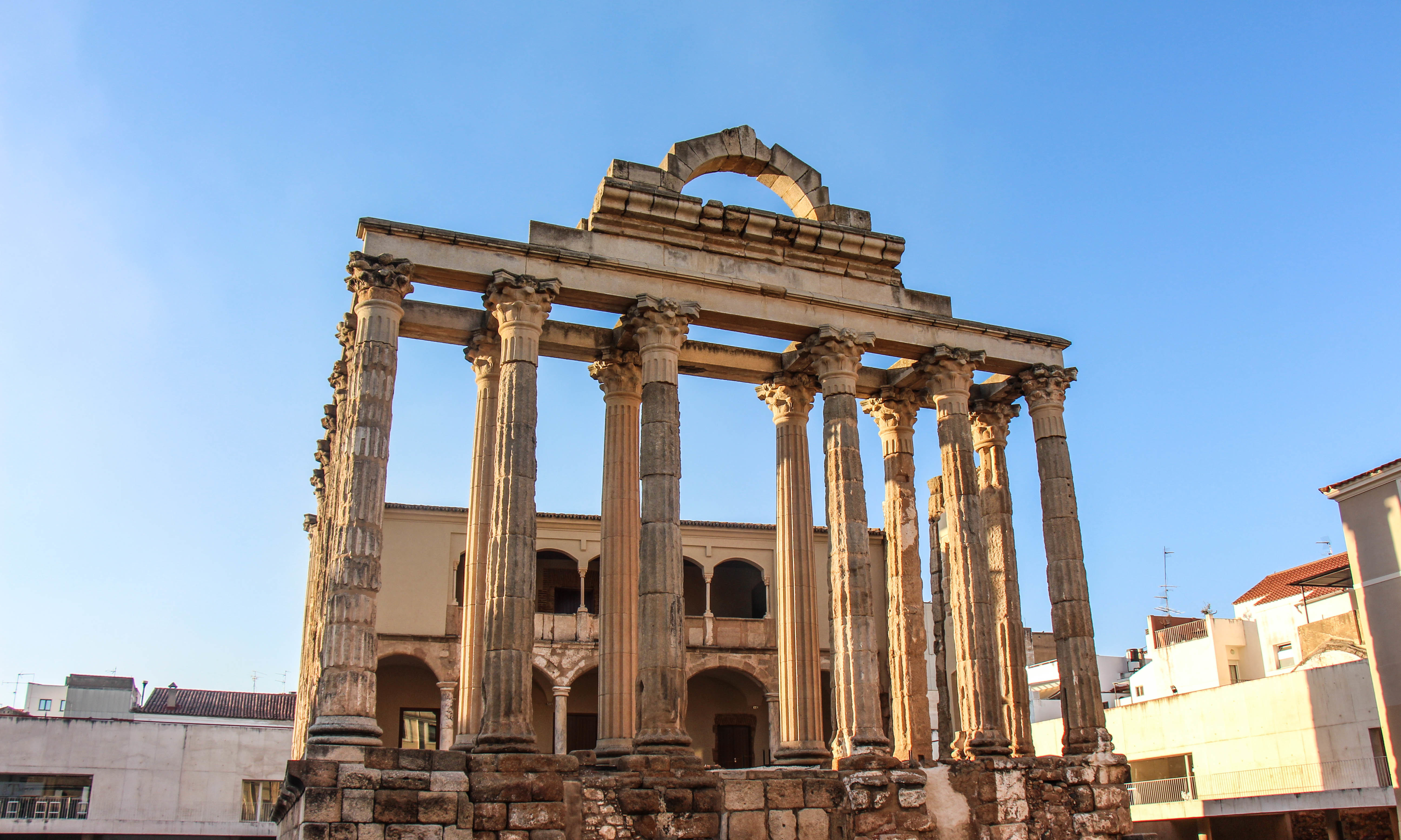 休息过后我们穿过梅里达商业街的巷子,找到了另一处古罗马时期的建筑—戴安娜神庙。戴安娜神庙建于奥古斯都大帝在位的公元一世纪期间,当时这座神庙坐落在一个大广场内,是当时Augusta Emerita(梅里达罗马时期的名字)的城市中心。十七世纪时考古学家贝尔纳贝·莫雷诺德·巴尔加斯(Bernabé Moreno de Vargas)判定这座神庙是供奉月亮女神戴安娜的神庙,之后人们就一直认为并把这座神庙称为“戴安娜神庙”,但是到了1972年,考古工作人员在此发掘出罗马皇室的雕塑,神话罗马皇帝的符号“Genius Augusti ”,才得知此神庙不是供奉戴安娜女神的,而是供奉古罗马皇帝的神庙。