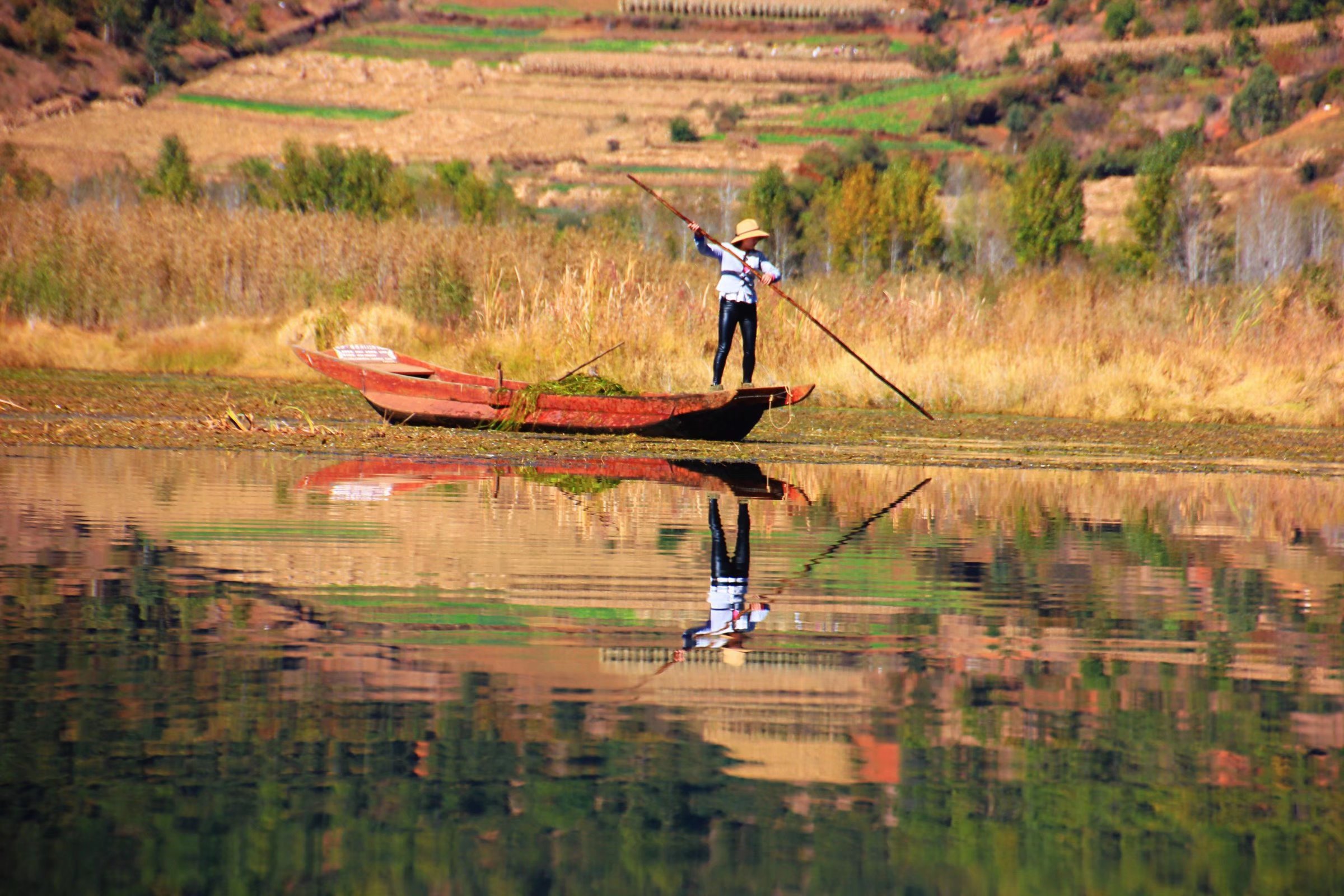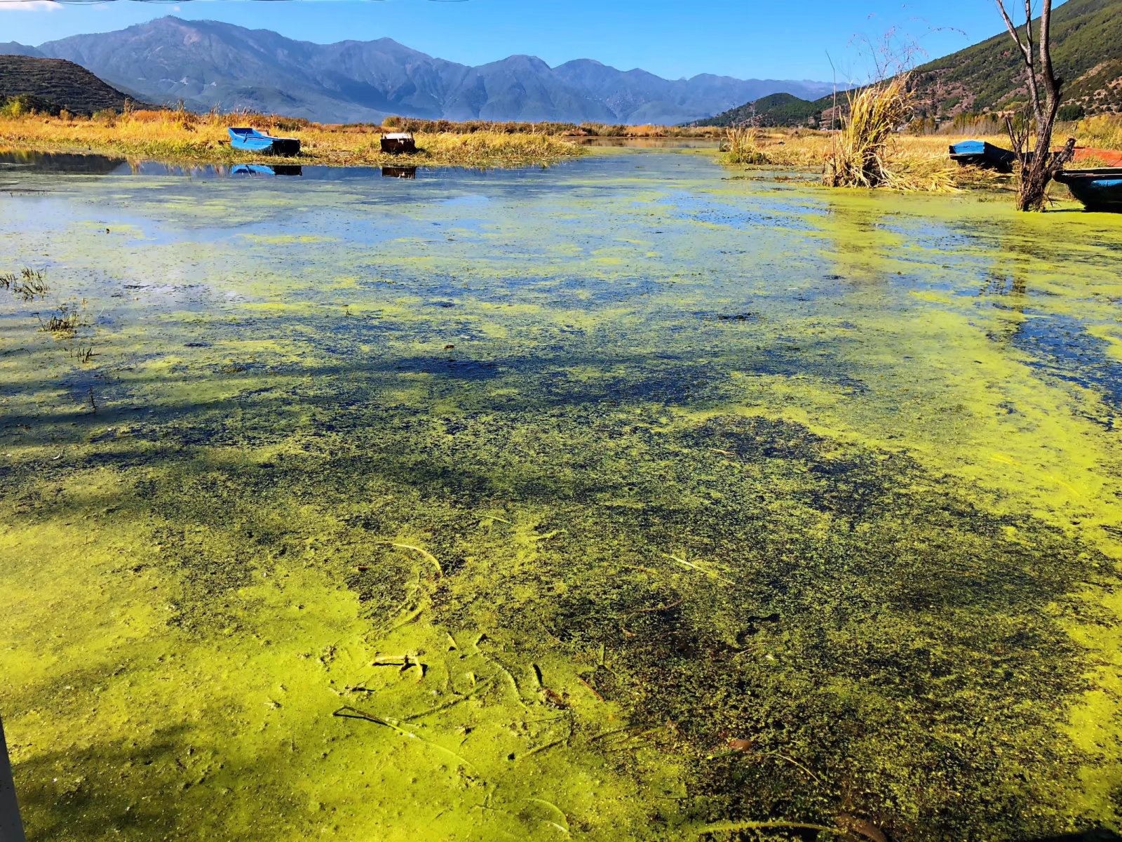 湖面这些白花好像是水性杨花吧。第一天到丽江的时候,我们就发现到处都有一种叫水性杨花的菜,名字很特别,晚上吃火塘牛肉的时候还特意点了一份,有点像菠菜,还蛮好吃的。