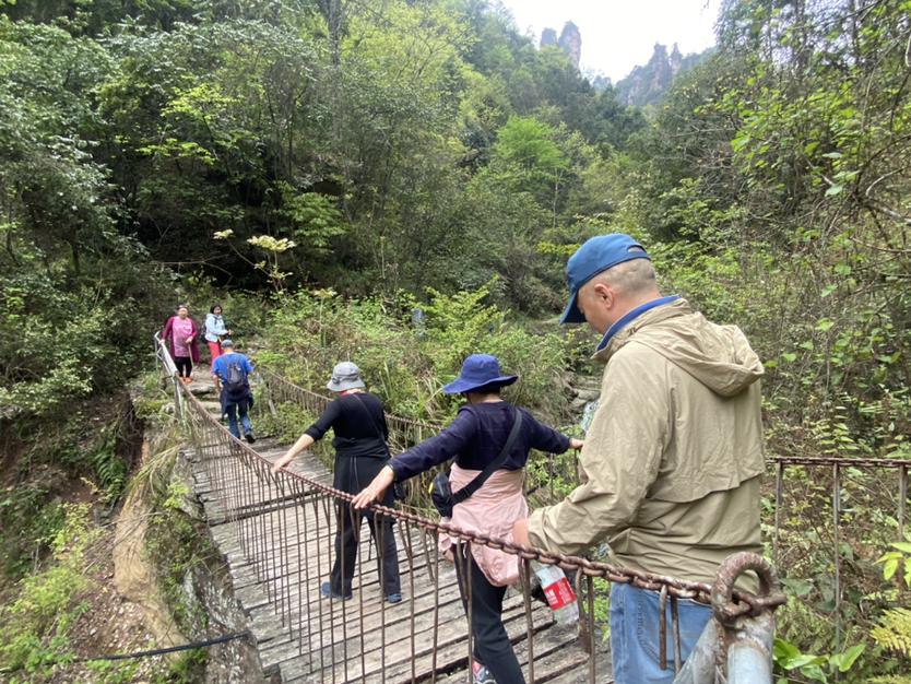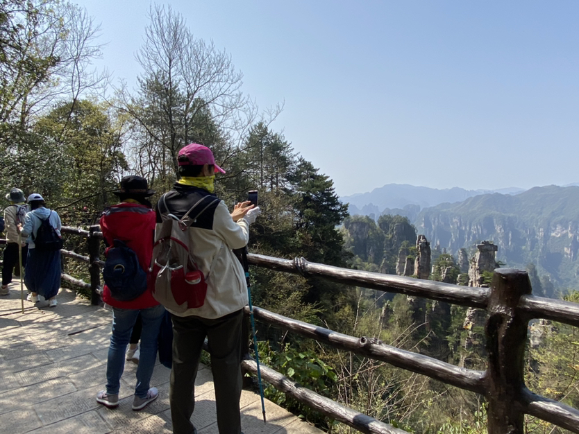 早上八点到达杨家界景区门口,大家坐车来到索道入口,几个哥哥姐姐和帅导去坐了索道,12位小伙伴和我一起徒步上去,出发前天气预报有雨,但是当天的天气真的是超级好,晴天,一路看尽了张家界国家森林公园的美景……