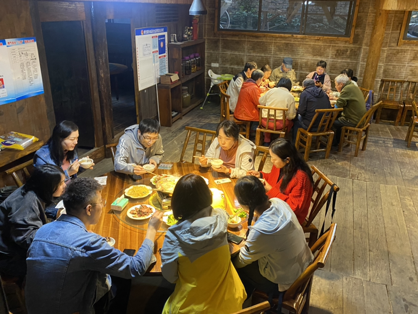 到达终点后坐车回名宿,车程十几分钟,大家入住后休息一下,今晚是我们第一顿团餐,大家吃的很开心