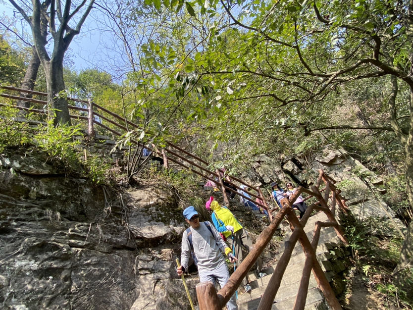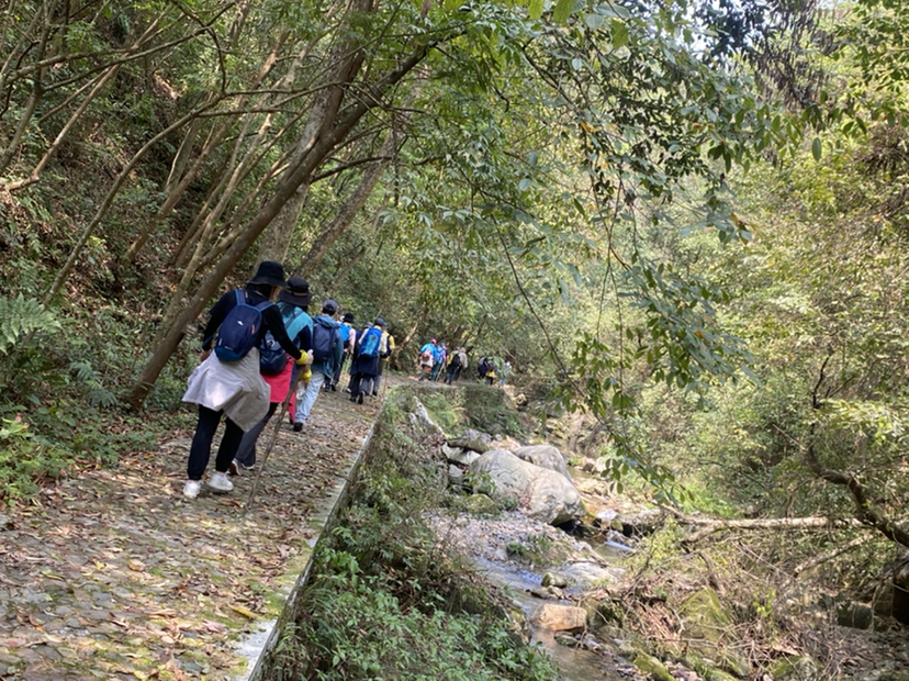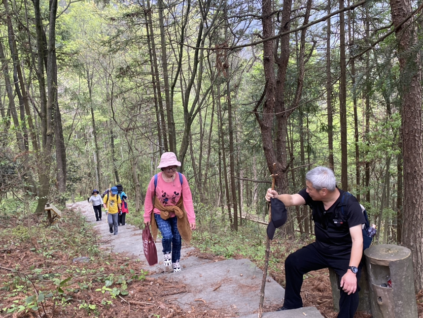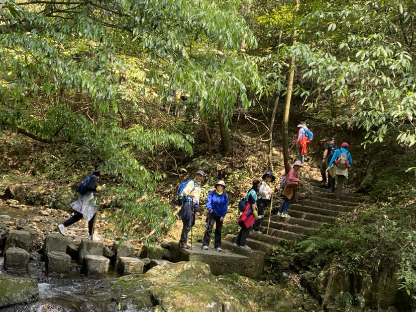 分批到达的同时大家已经把路餐解决啦,集合完毕后我们就出发啦,一路的路况非常好,石板路,台阶路,伴随着孱孱的雄溪的溪流声,小鸟的叫声,大家的说笑声,一路走来也是很轻松,到达娘娘岗,爬升结束