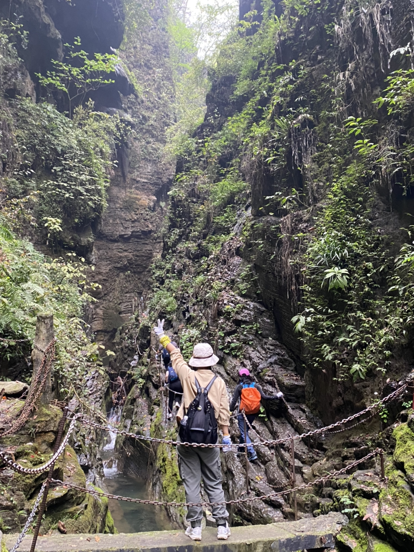 下午三点到达清风峡,开始了今天的轻徒步,好在天气还是不错的,开始就是一段乱石路,大家互相帮助稳步向前,经过一座破旧的吊桥,就是有些青苔的土路到达清风峡小瀑布,大家拍了很多美照后原路返回起点~