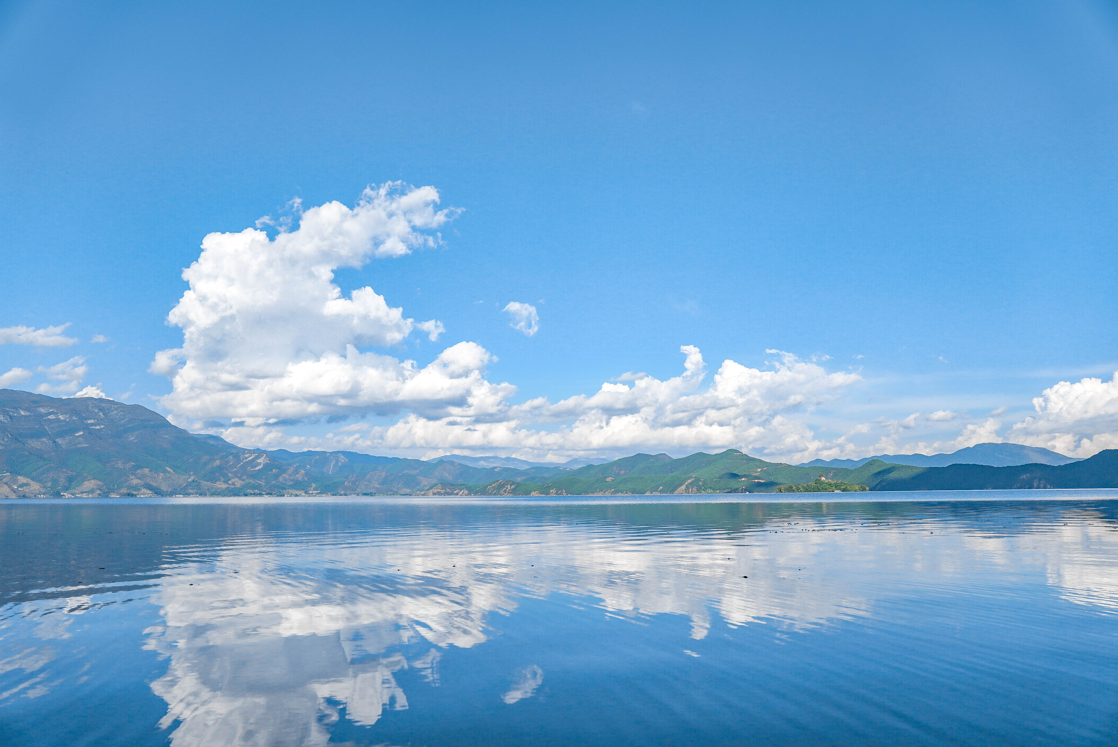 在泸沽湖里,最灵动的除了湖水以外,就是变幻莫测的云朵了,特别是在这雨季。早晨时总是乌云密布,午后开始放晴时,时而像棉花糖般柔软可爱、时而也会飘来一顶乌云、时而像万马奔腾般气势磅礴,湖水也会随着云朵的变化而改变模样。
