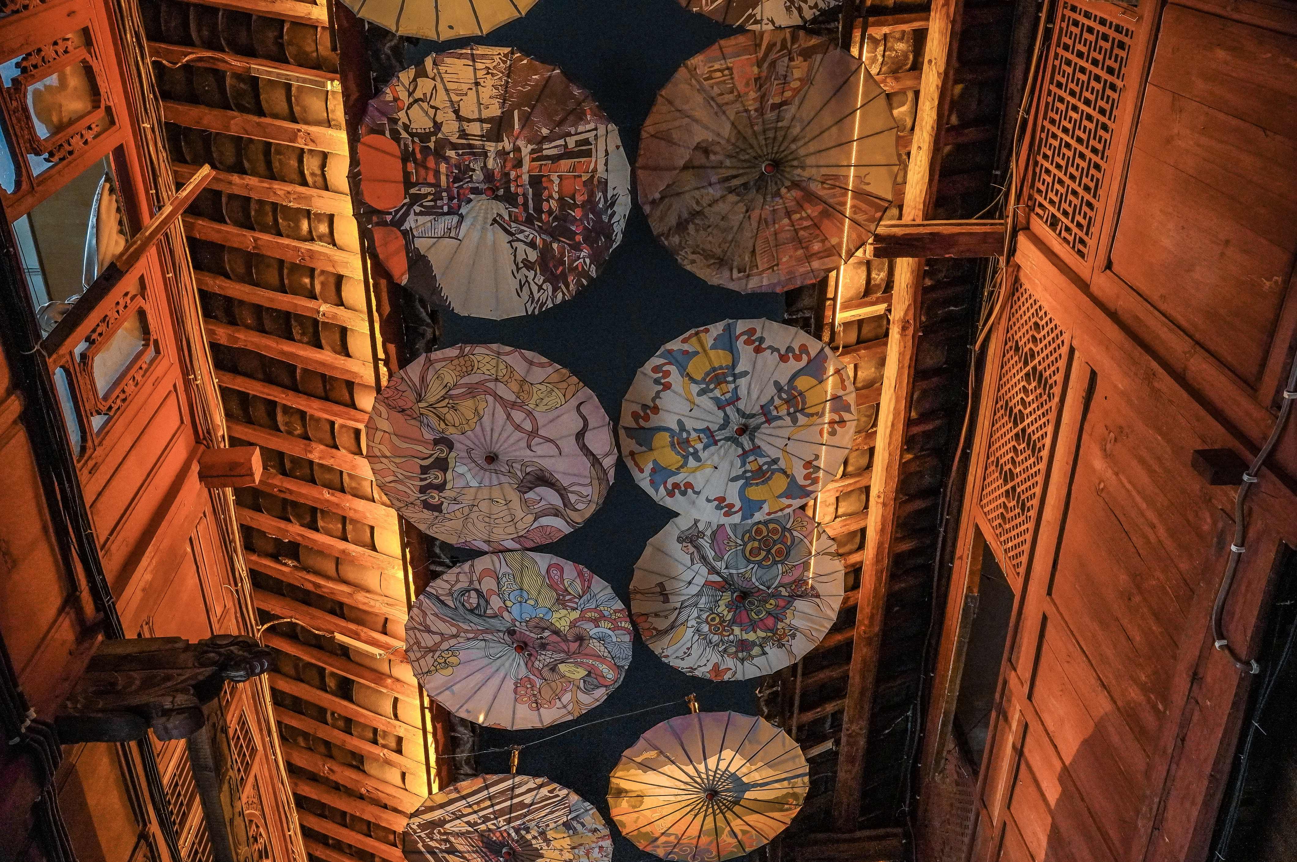 光义街现文巷,布满着油纸伞的国风浪漫。傍晚无意中经过这儿时,阳光透过纸伞洒下余晖,出现了幸运的丁达尔光,原来光有形状时是那么的美。