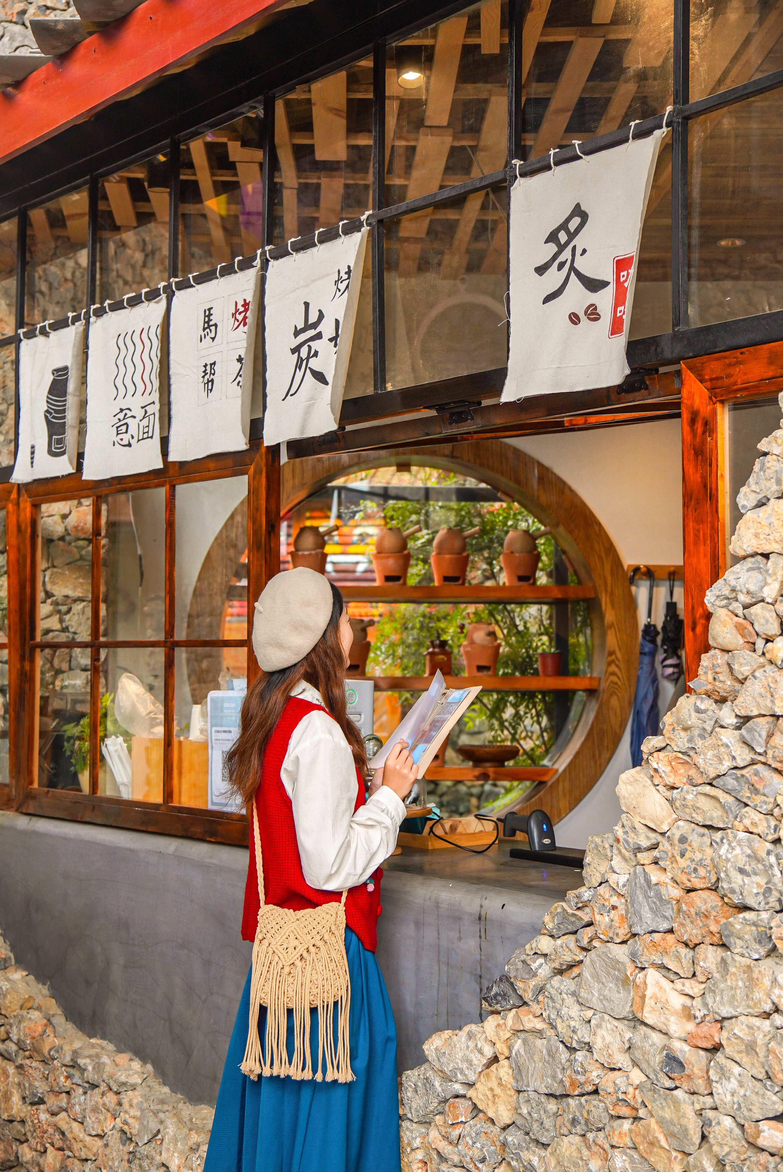 这里有一家名叫「一瓦堂」的店,就在白沙古镇牌坊前,国风雅致的设计装潢,二楼咖啡店露台还能与古镇牌坊合影,如果遇上天气晴朗的话,后面就是玉龙雪山了!