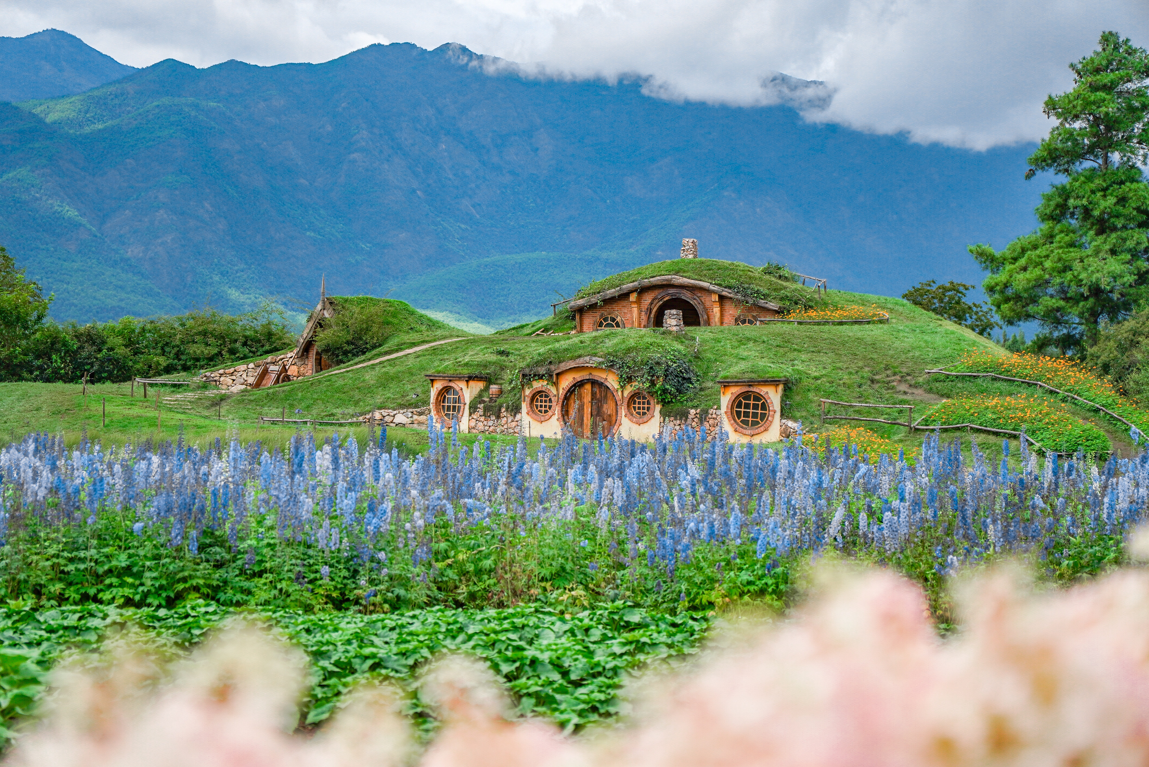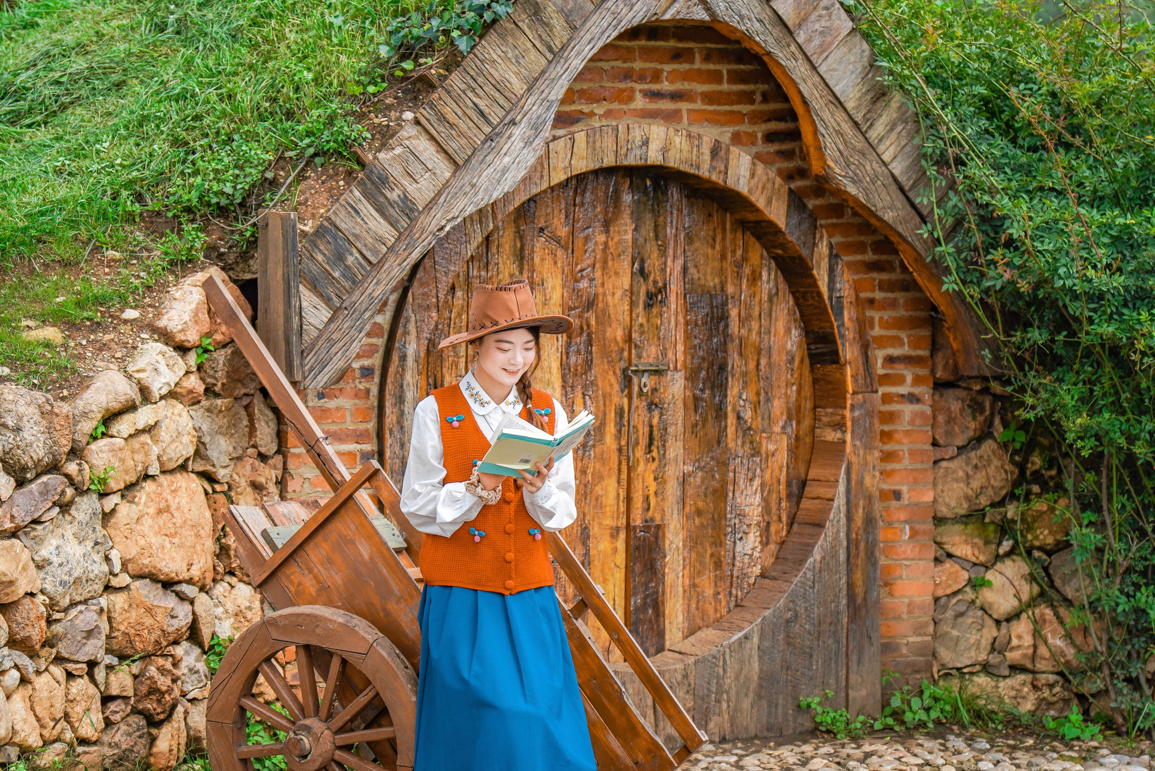 它在景区的最里面位置,绕过一个湖泊就能看到了,霍比特人小屋层叠在山腰上有三座,这里还会有几只羊驼或小马在放养哦,穿一袭复古的欧式裙子、戴着牛仔帽、手拿书籍,在草甸上随心闲逛,仿佛这里就是自己家了!
