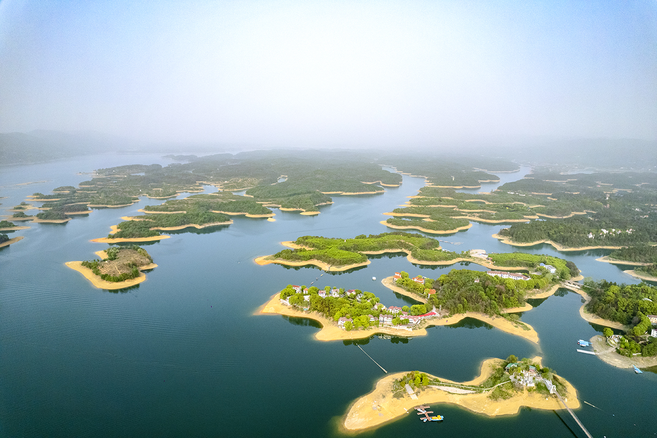 一路上,可以看镶嵌在湖心的数百个湖心岛,百岛画廊的名称绝不是徒有。