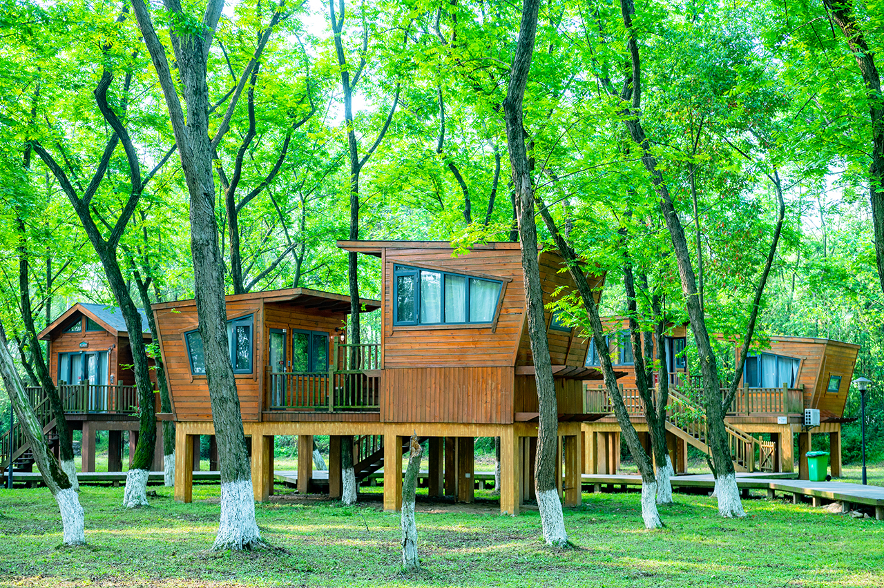 除了房车,里面还有浪漫童话主题树屋、香樟木屋、穹庐星座帐篷房、湖边别墅,以及亲子城堡等等可选,甚至还有4星标准的假日酒店。