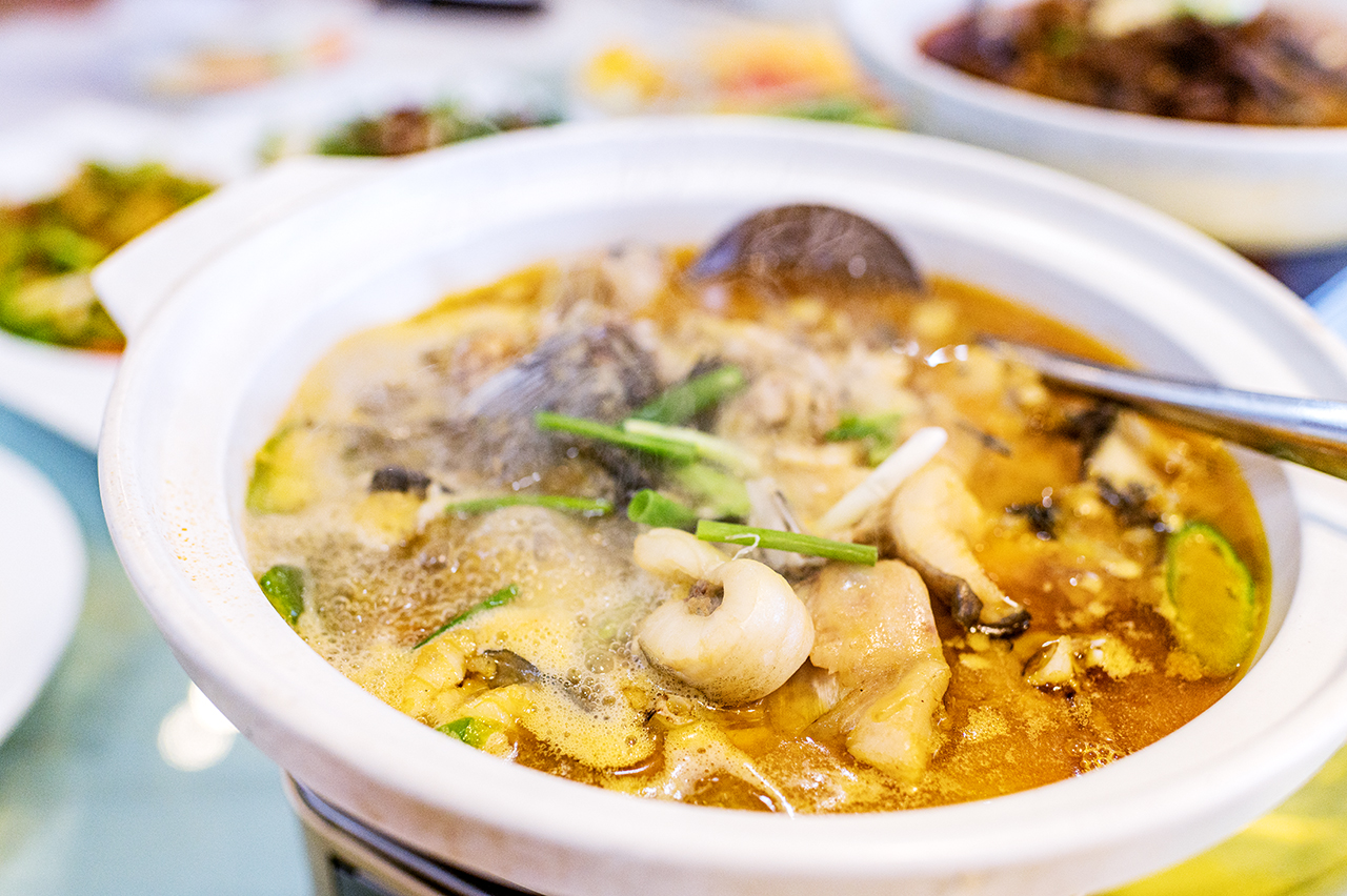 还有一个必吃的是松滋鸡。它不仅是当地特产,也是全国农产品地理标志之一。特别挑选松滋当地散养的土鸡来烹饪,色泽金黄,鲜香可人,肉质鲜美,有韧劲,越嚼越香。