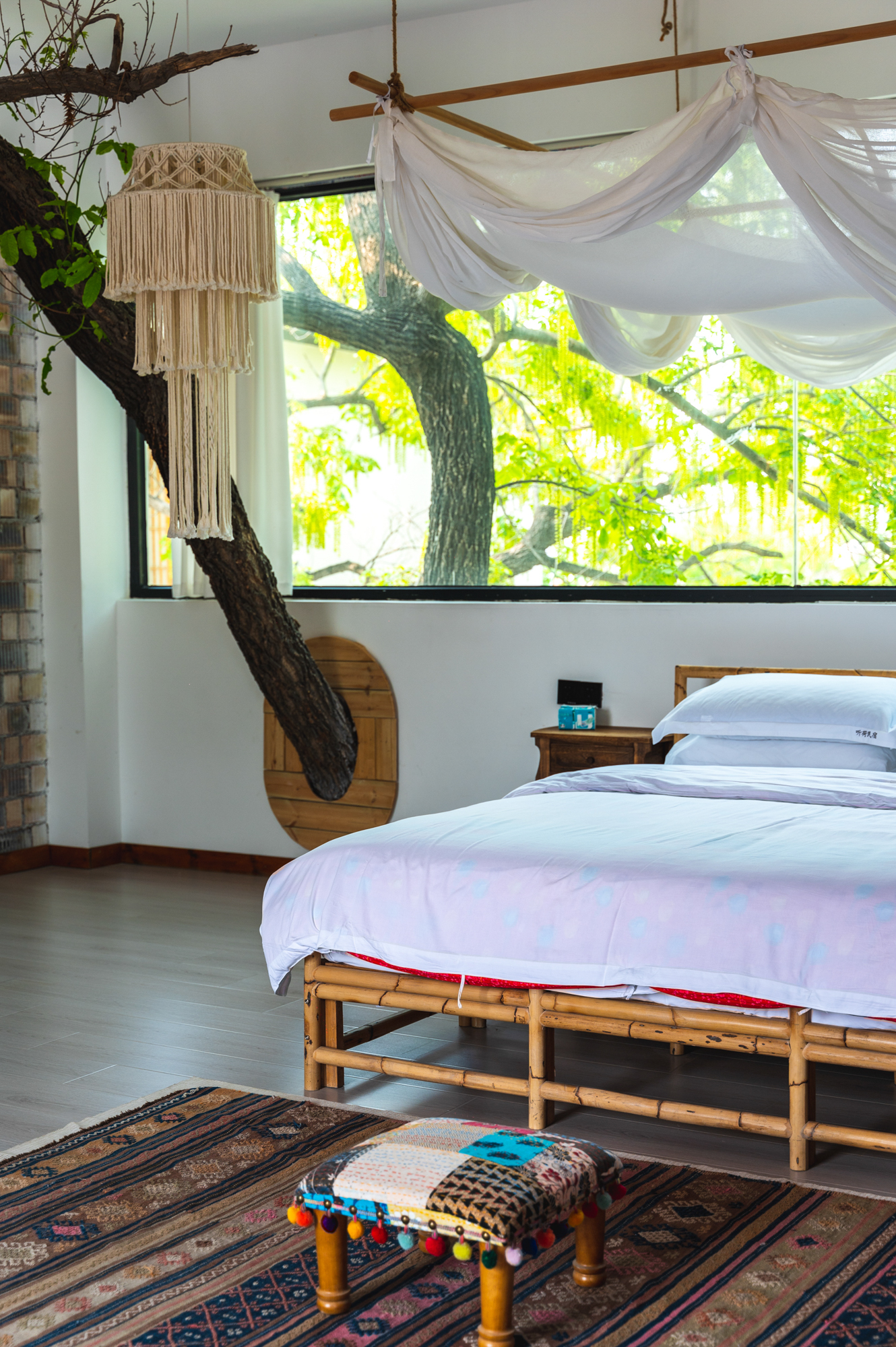 这座树屋民宿也非常有特色,在建造这间民宿时,并没有砍掉眼前这棵树,当地人叫元宝树,元宝树的一段枝干完全伸进了房间内,即便不打开窗户,眼前就是满眼的绿意,真的非常喜欢这家民宿,待下次再来一定要住在这里体验一番。
