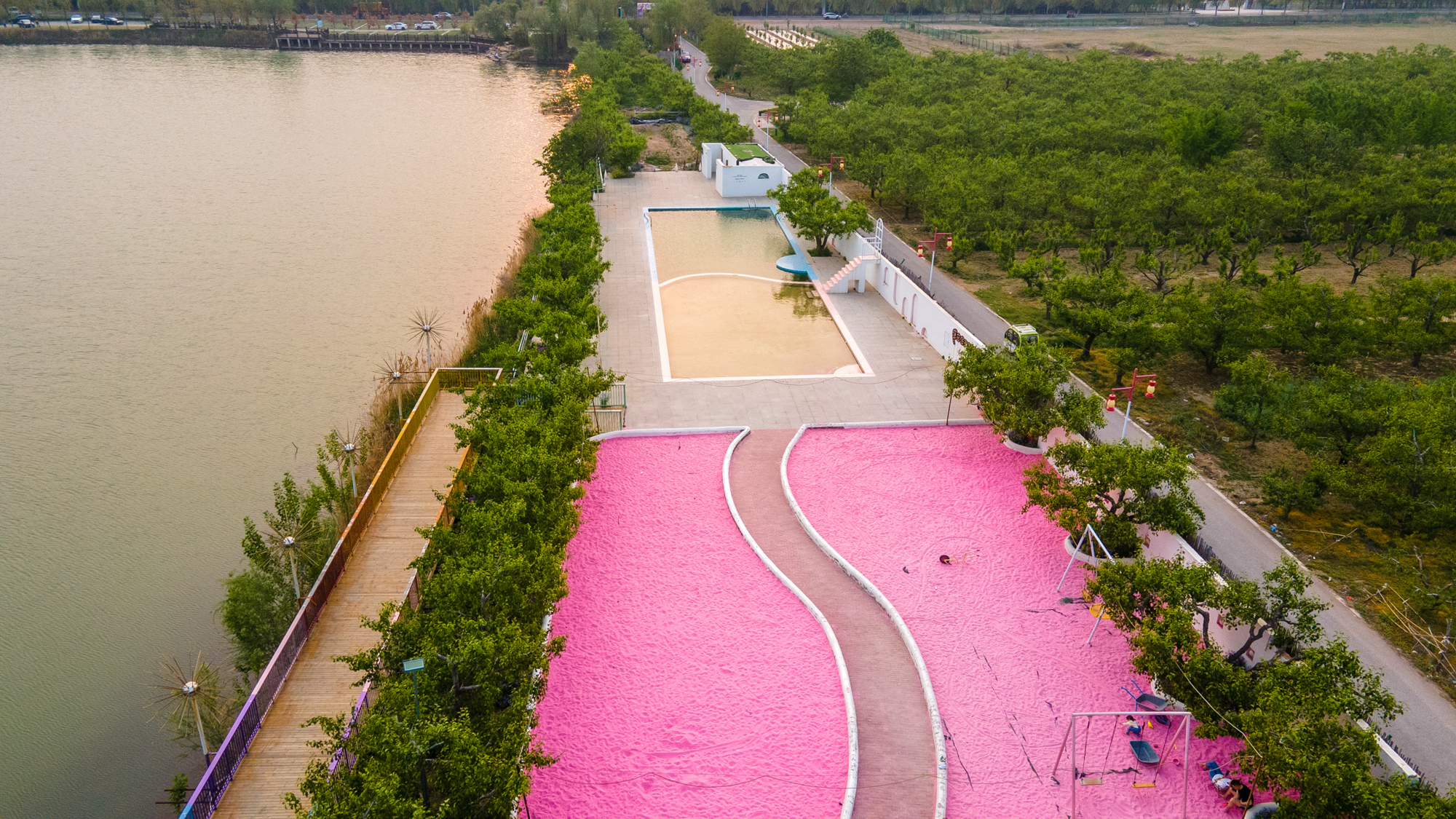 这个季节虽然没有梨花盛开的景色,但那郁郁葱葱的梨树也是别有一番风情,乐园内还设置了许多网红拍照打卡点,随手一拍,就是一张自带ins风的唯美大片,由此还吸引了不少情侣来这里打卡。