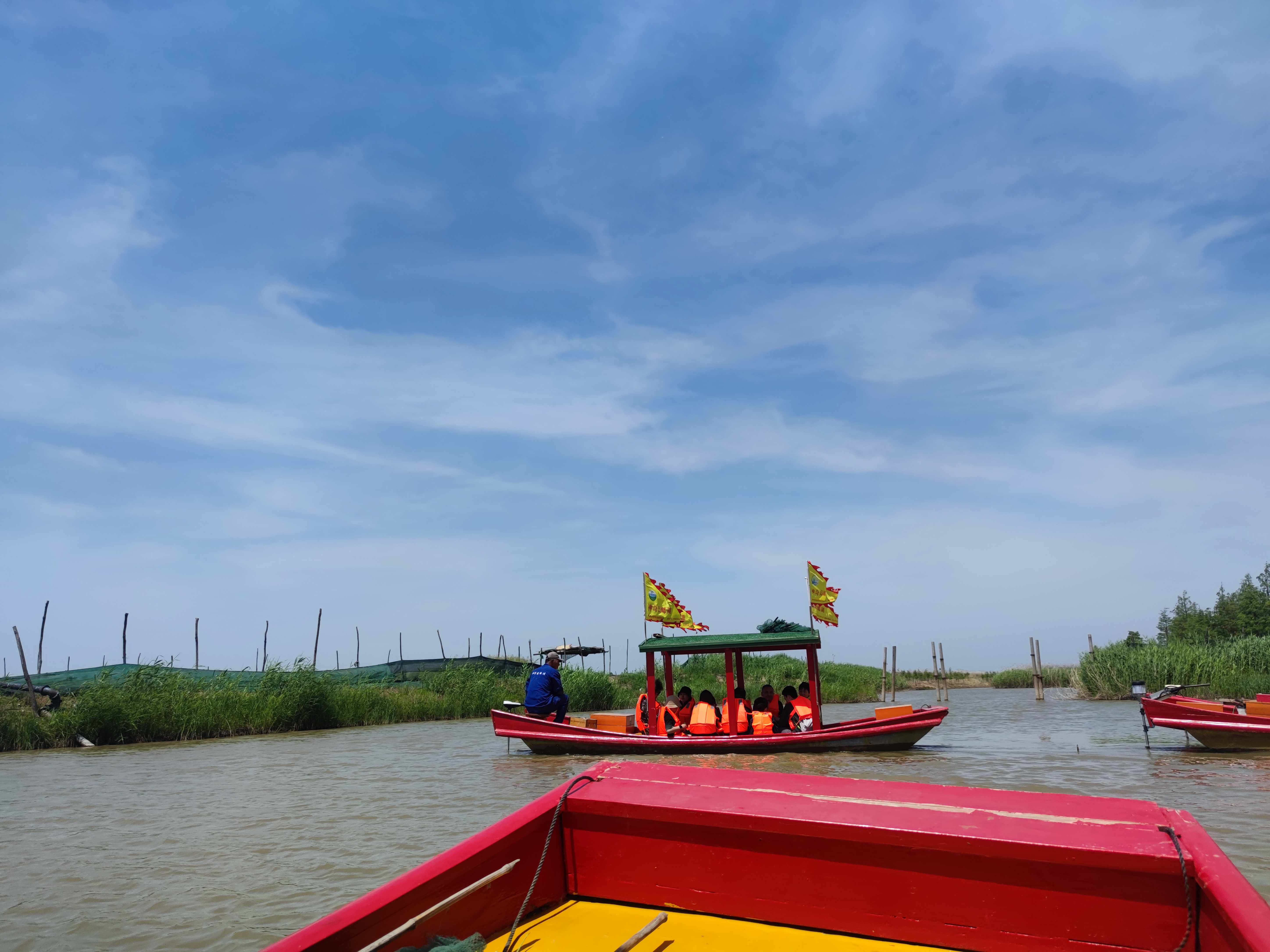出发到高邮湖湿地,这里风光旖旎,微风不燥,小朋友们分成两对,一部分开始做高邮古法腌鸭蛋,另一部分乘游船走芦苇荡迷宫,然后下地笼。每个小朋友都有一个地笼,等到下午的时候再收起来。看看有什么收获。