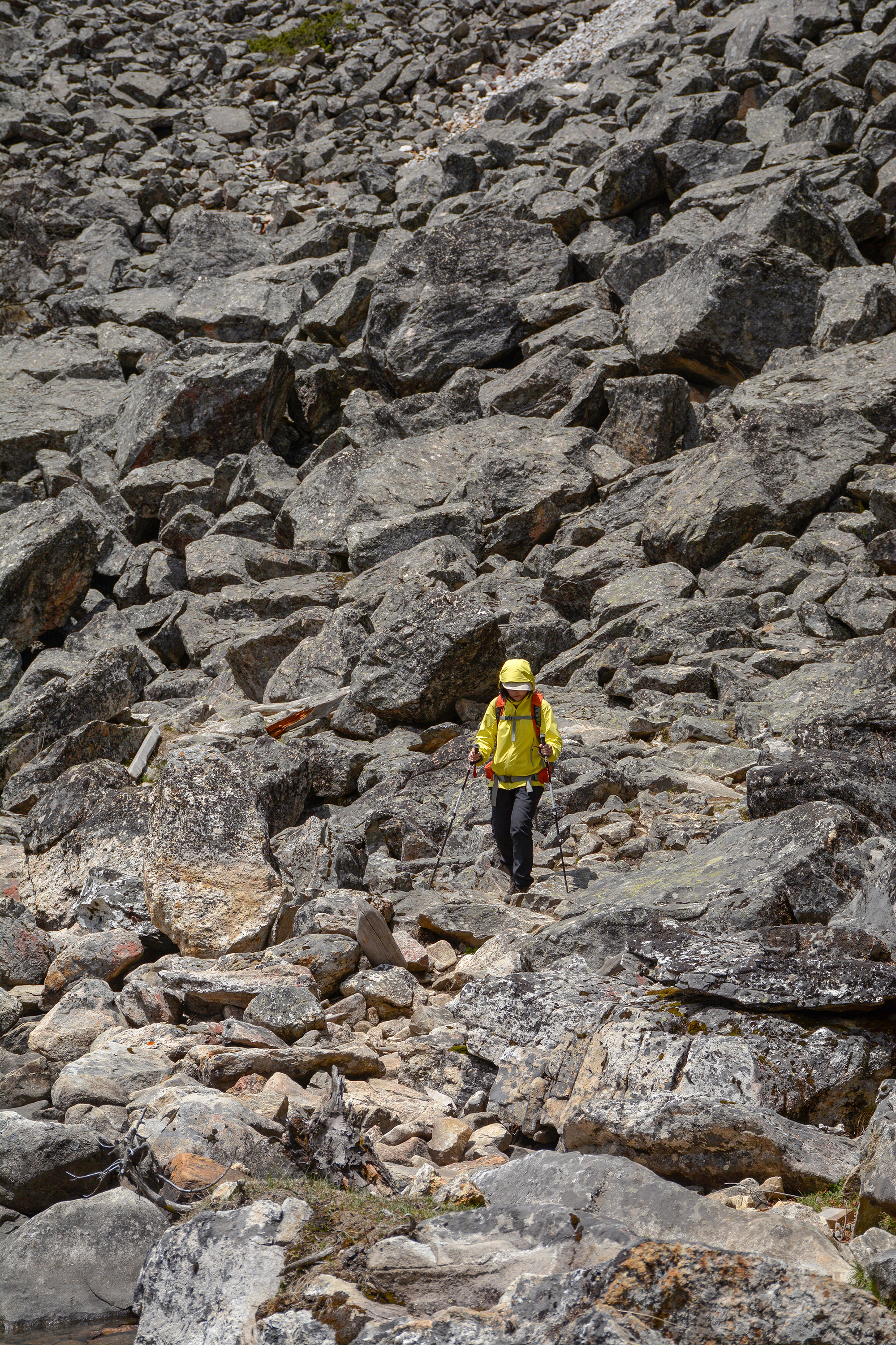 一路上,我们现是经过了一段大石堆,随后又走进一片开阔草甸,风光绝美。已经很久很久没有这样舒适的徒步体验了。