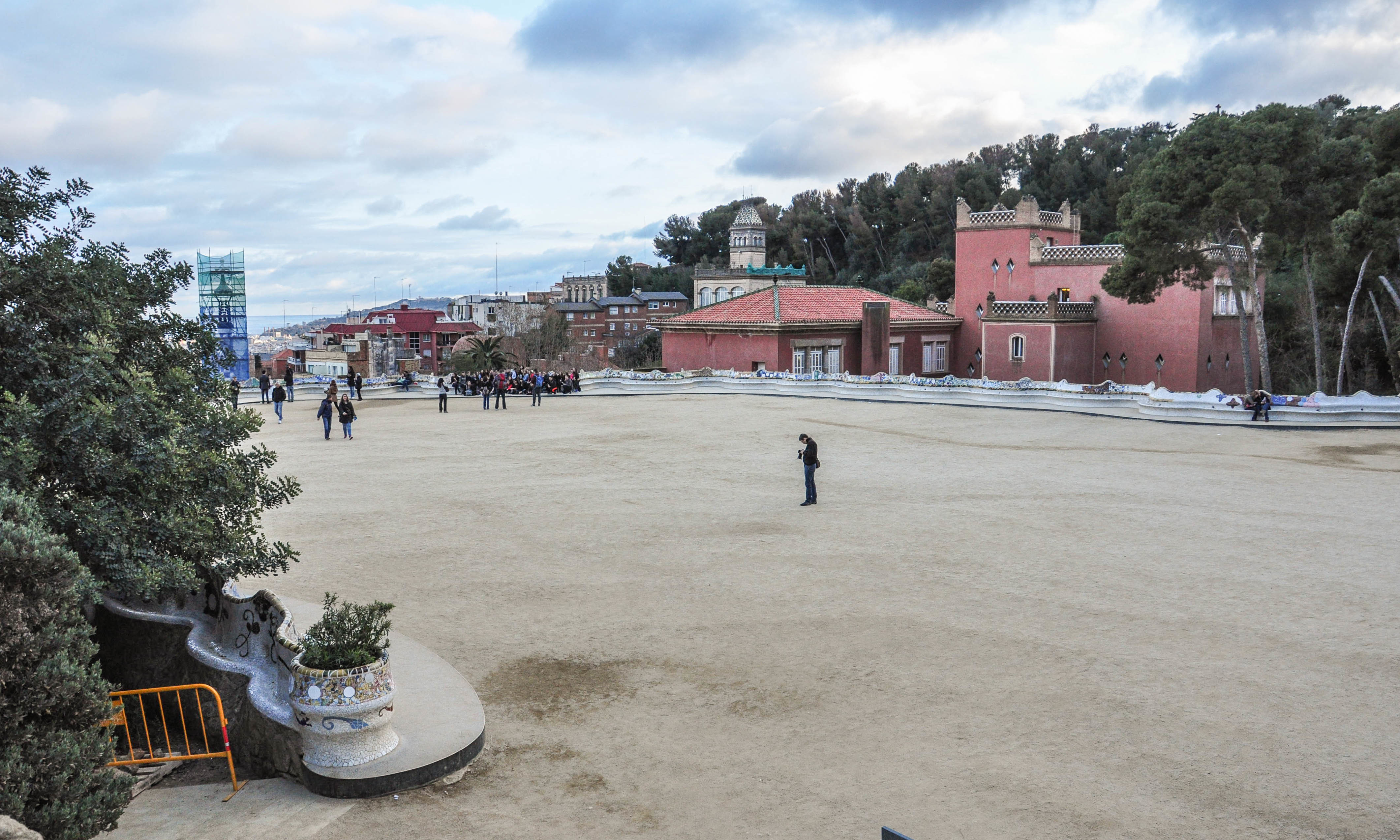 顺着桂尔公园内蜿蜒的小路一直向上就到了园内的最高点—骷髅地,骷髅地是一座拥有十字架的高台,是高迪隐喻耶稣受难之地。