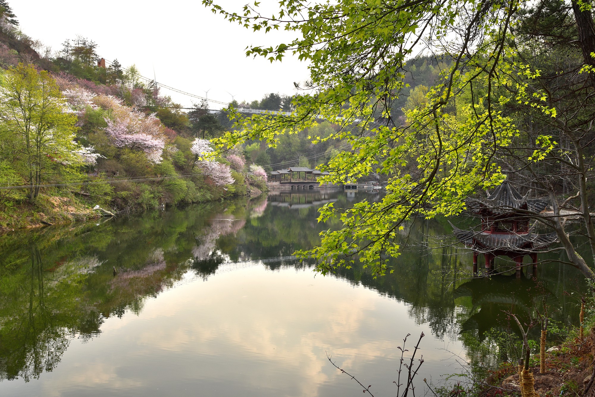春天的清凉寨呈现出新鲜艳丽的色彩,沿着台阶来到酒醉湖边,一池春水倒映着绿树红花,透出生机勃勃的春意。走在酒醉湖畔,虽然没有醉酒,却被这片春色醉了。