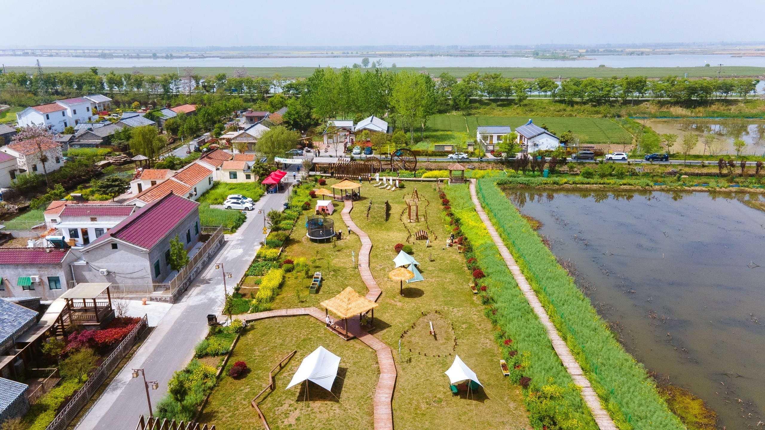 如今的黄庄也已是江苏省省级特色田园乡村、江苏省乡村旅游重点村、2022水韵江苏网红美丽乡村,以其田园风光、水乡村落、非遗旅游、帐篷露营为特色,如徐徐展开的美丽画卷,吸引了周边众多游人的目光。