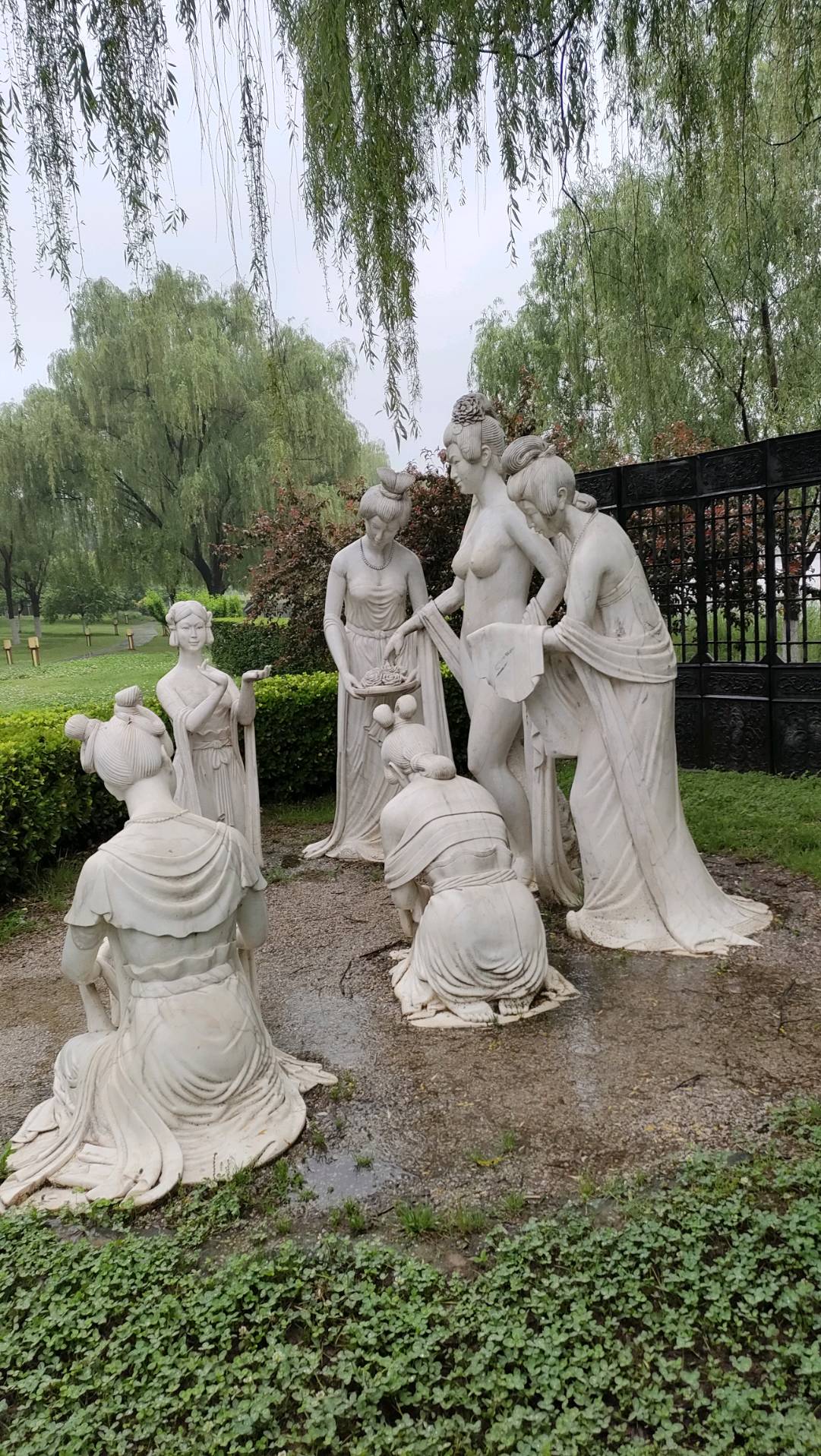 市,谁知道就遇上下雨,去了大明宫发现大明宫遗址面积真大,有一个微缩景观,看了才知道当年的古长安的建筑多么壮观,昌盛繁华,为东方的文化赞绝,因为下雨,树木格外葱绿。