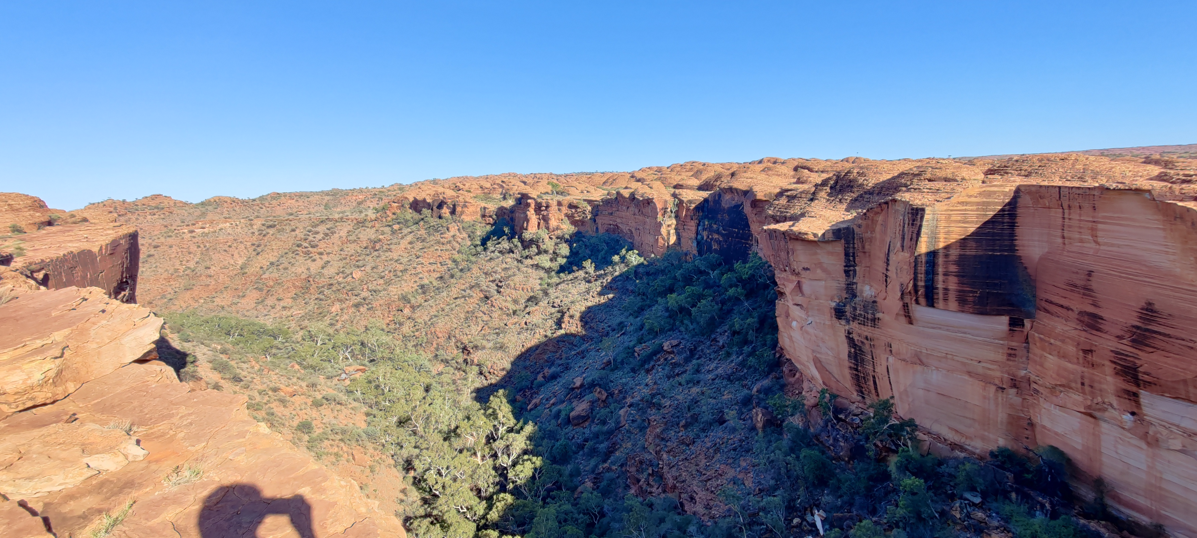 帝王谷峡谷的横切面非常壮观,因为阴影的原因我们照出来的照片有一部分是阴影部分的黑色。但是肉眼所见的景色比相机拍摄出来的要美的多。