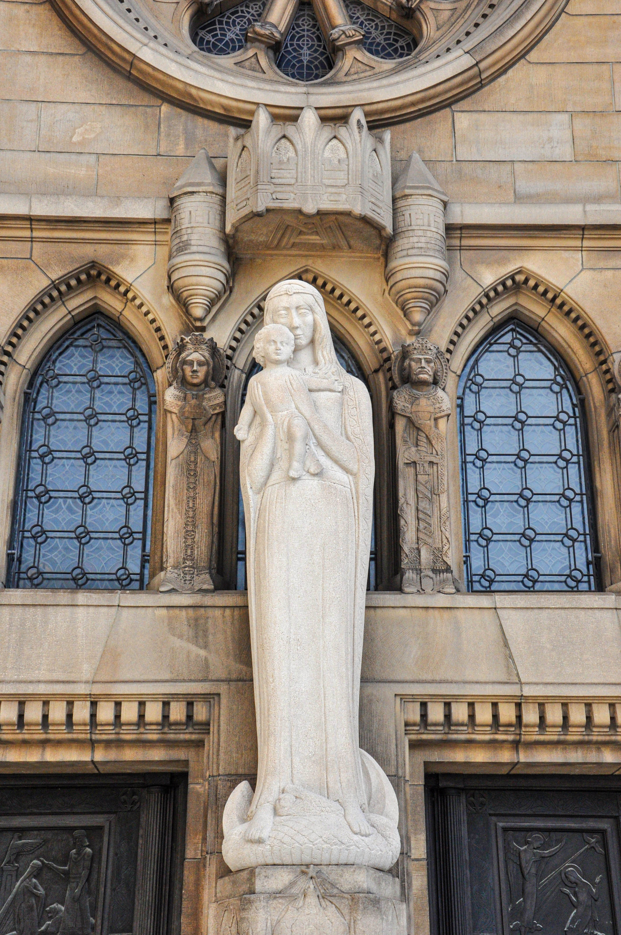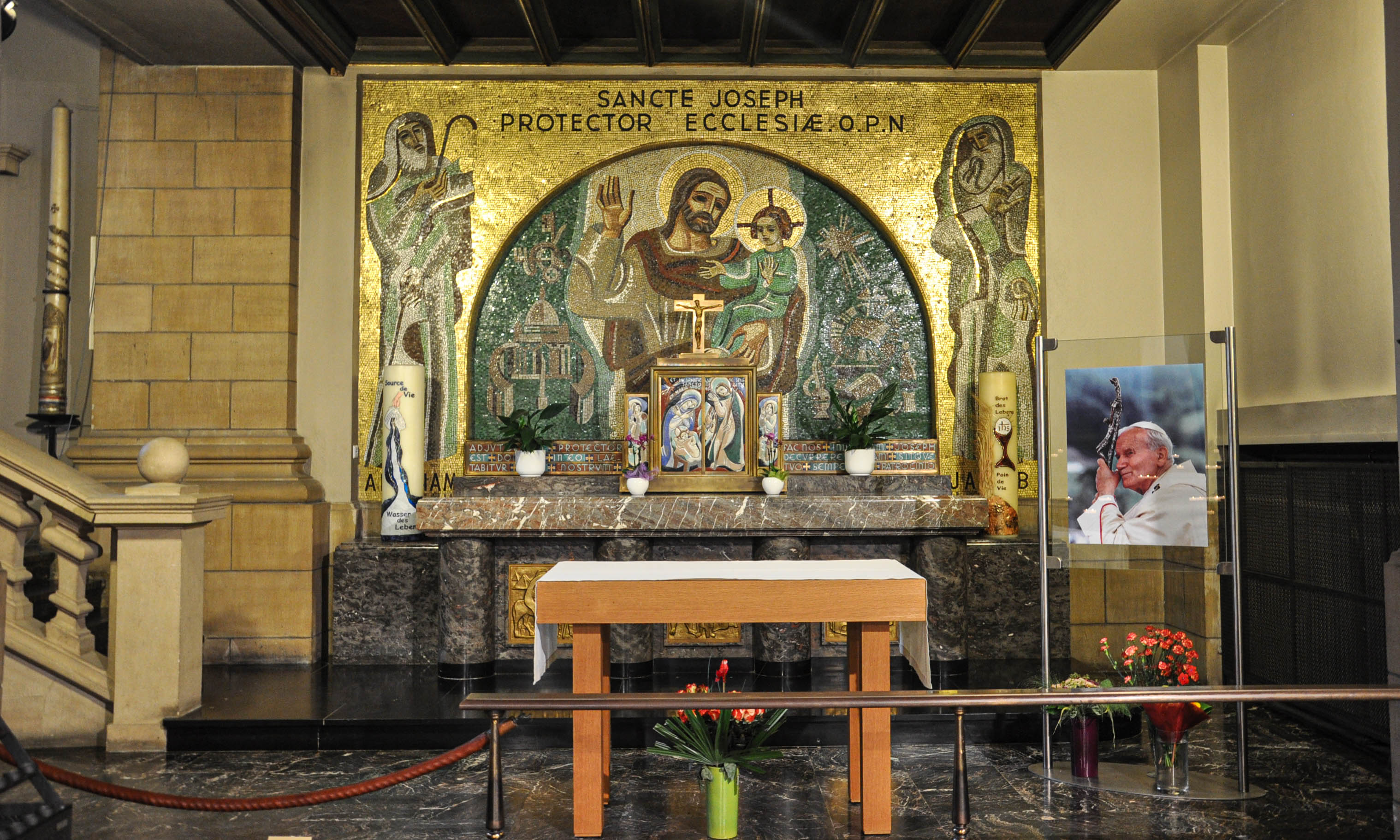 教堂的主祭坛上放置着名贵的雪花石膏圣母玛利亚雕像