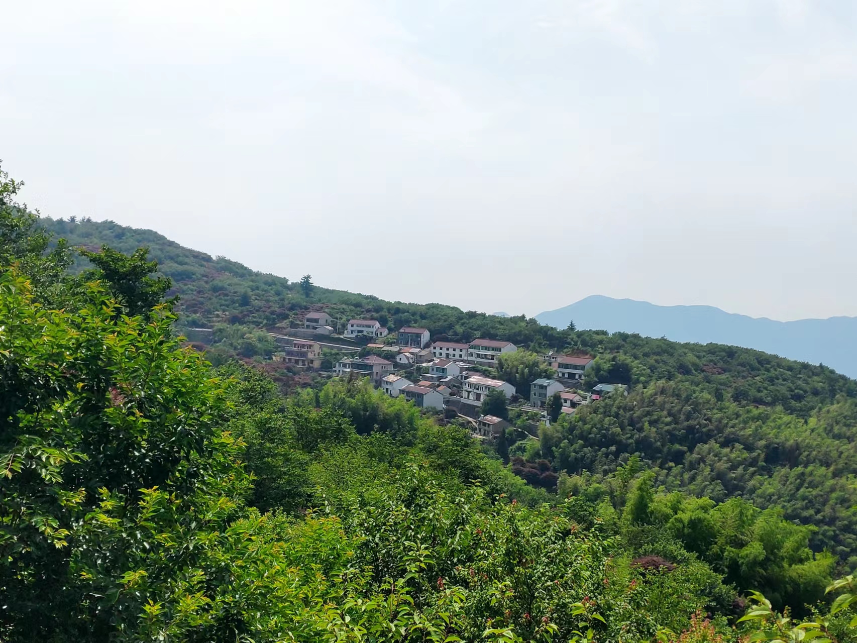 约莫13:20时,养家、允儿两位领队要继续收拢下队伍再出发,于是我和另一位小伙伴便先行启程了。接下来的路,是两小段公路和长长的盘山而下的山路。虽说稀疏平常,却也蕴涵着几丝小小的惊喜。13:40途径一个小村庄时,眼前的青山,突然由绿色变为了绿褐相间,似乎是一位俏皮的孩童打翻了造物主的墨水瓶,肆意挥洒出了这番色彩斑斓。片刻之后,再回望小村庄,宛如漂浮在林海中的秘境,和周围的景致完整融为了一体。14点时突见几面墙壁笔直而下,我们惊讶于这山林深处竟隐藏着如此庞大的人造之物,原来,这是一处废弃的采石场,历经岁月变迁依然屹立不倒,向行人们诉说着曾经热烈、奔放的往事。